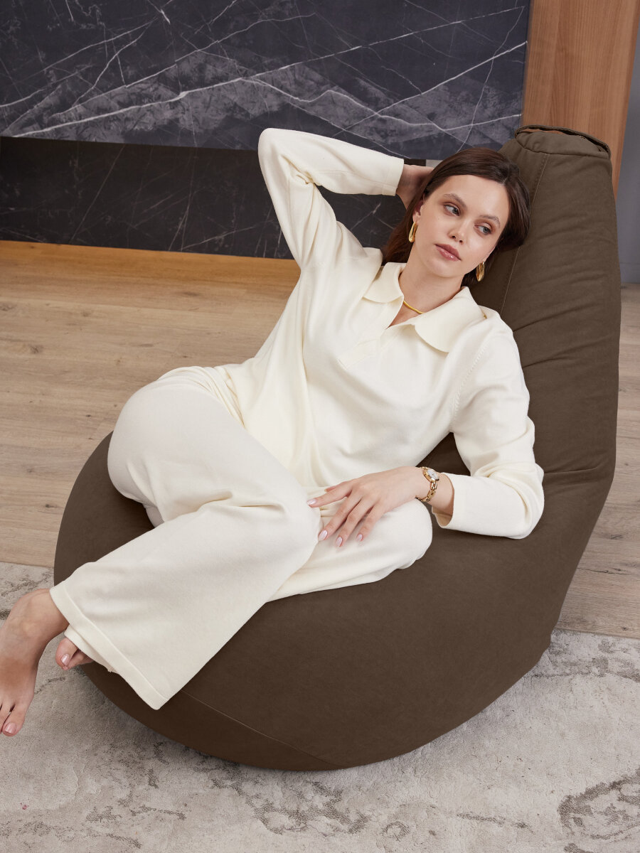 Кресло мешок Laavi Home кресло груша, размер ХXXL, мебельный велюр, шоколадный