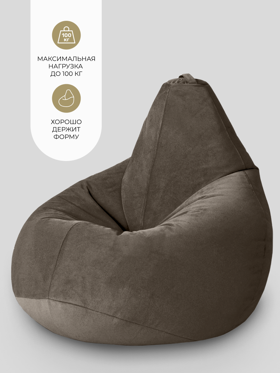 Кресло мешок Laavi Home кресло груша, размер ХXXL, мебельный велюр, шоколадный
