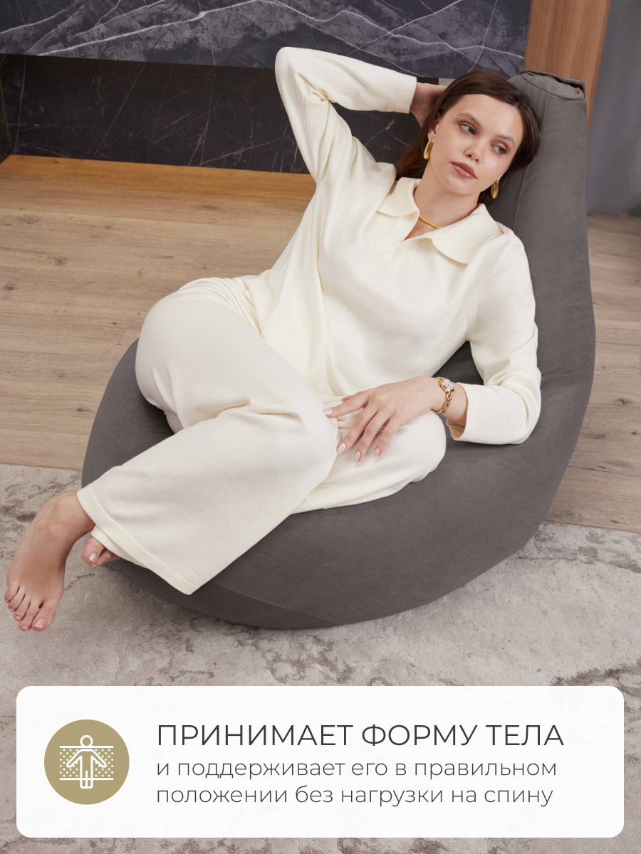 Кресло мешок Laavi Home кресло груша, размер ХXL, мебельный велюр, сталь