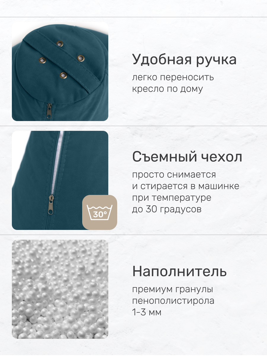 Кресло мешок Laavi Home кресло груша, размер ХXXL, мебельный велюр, глубокая бирюза