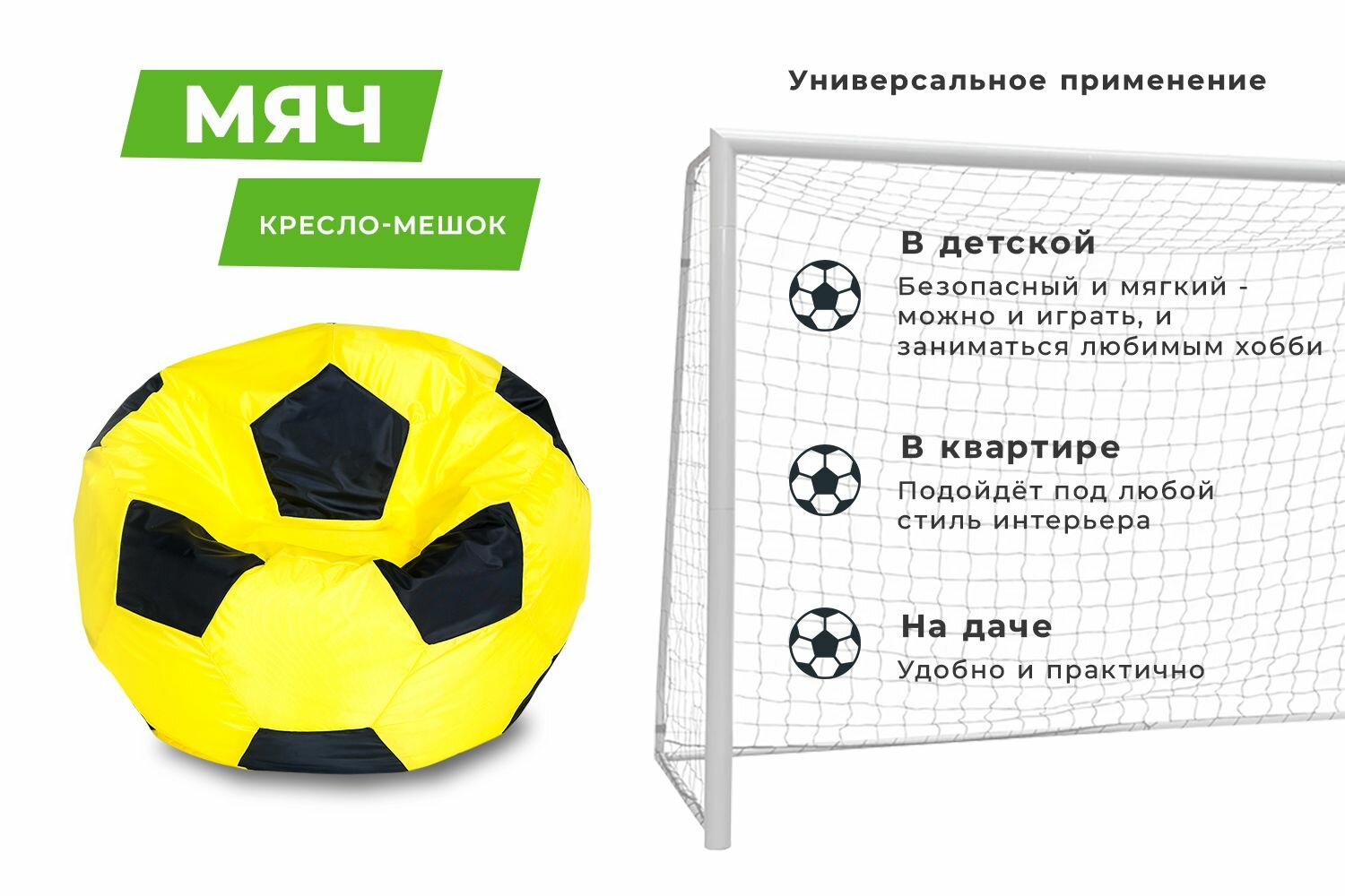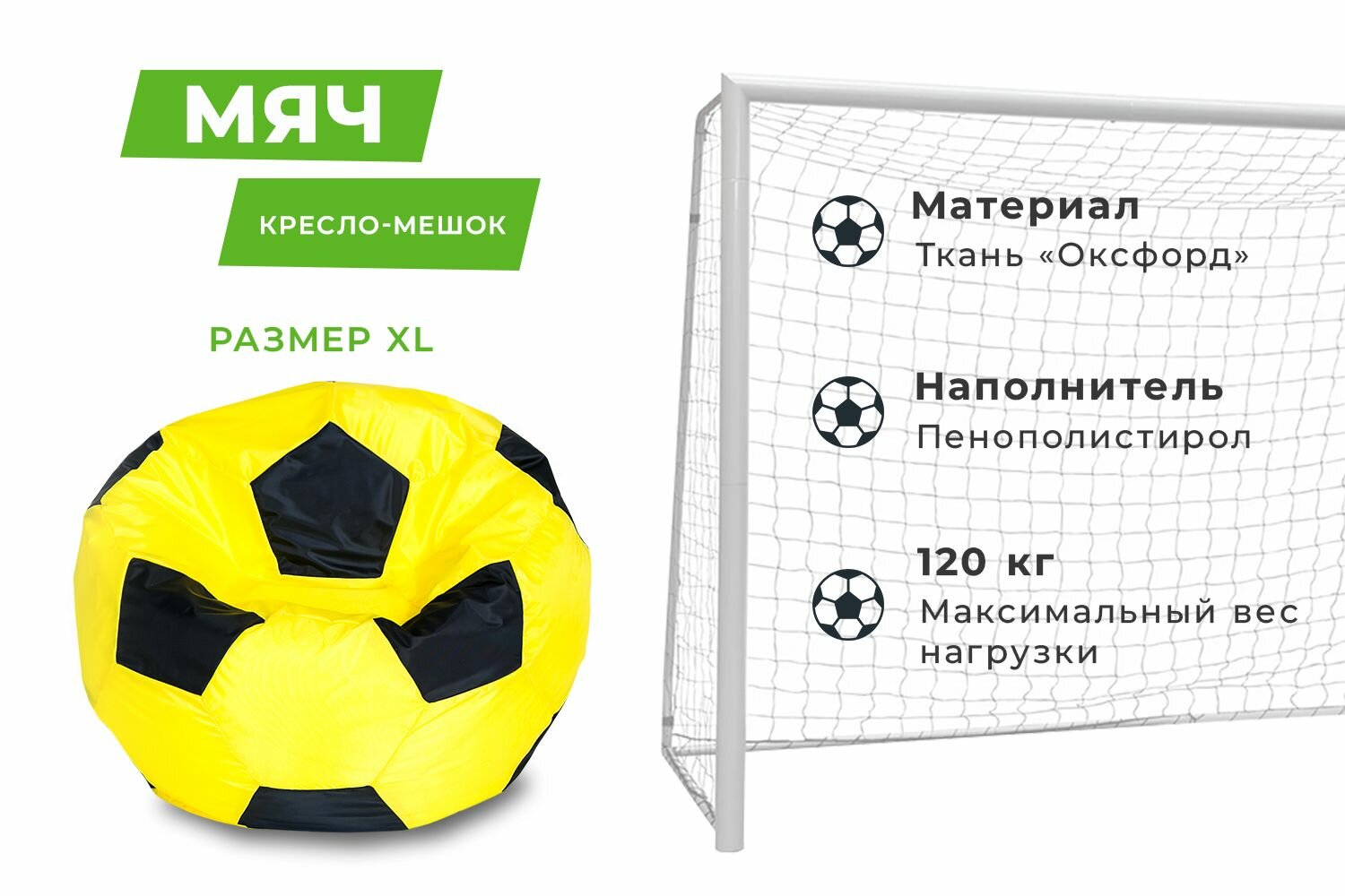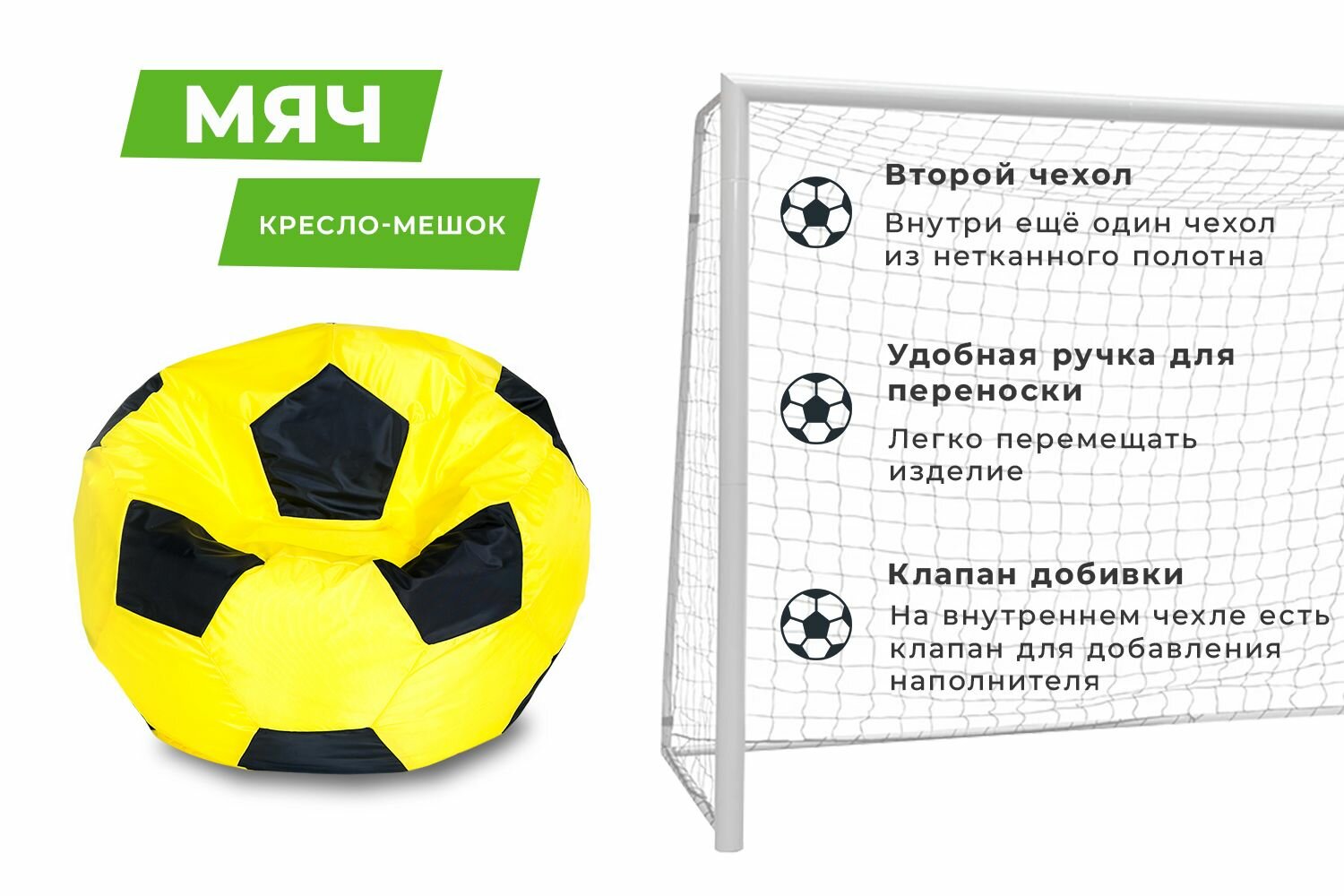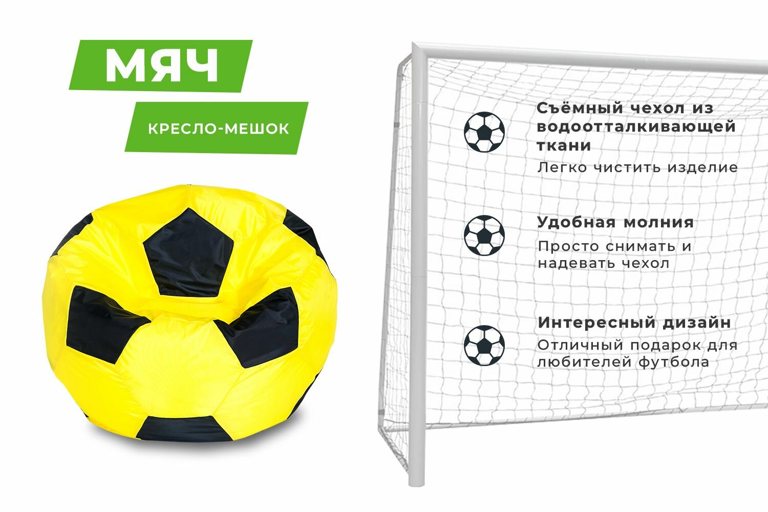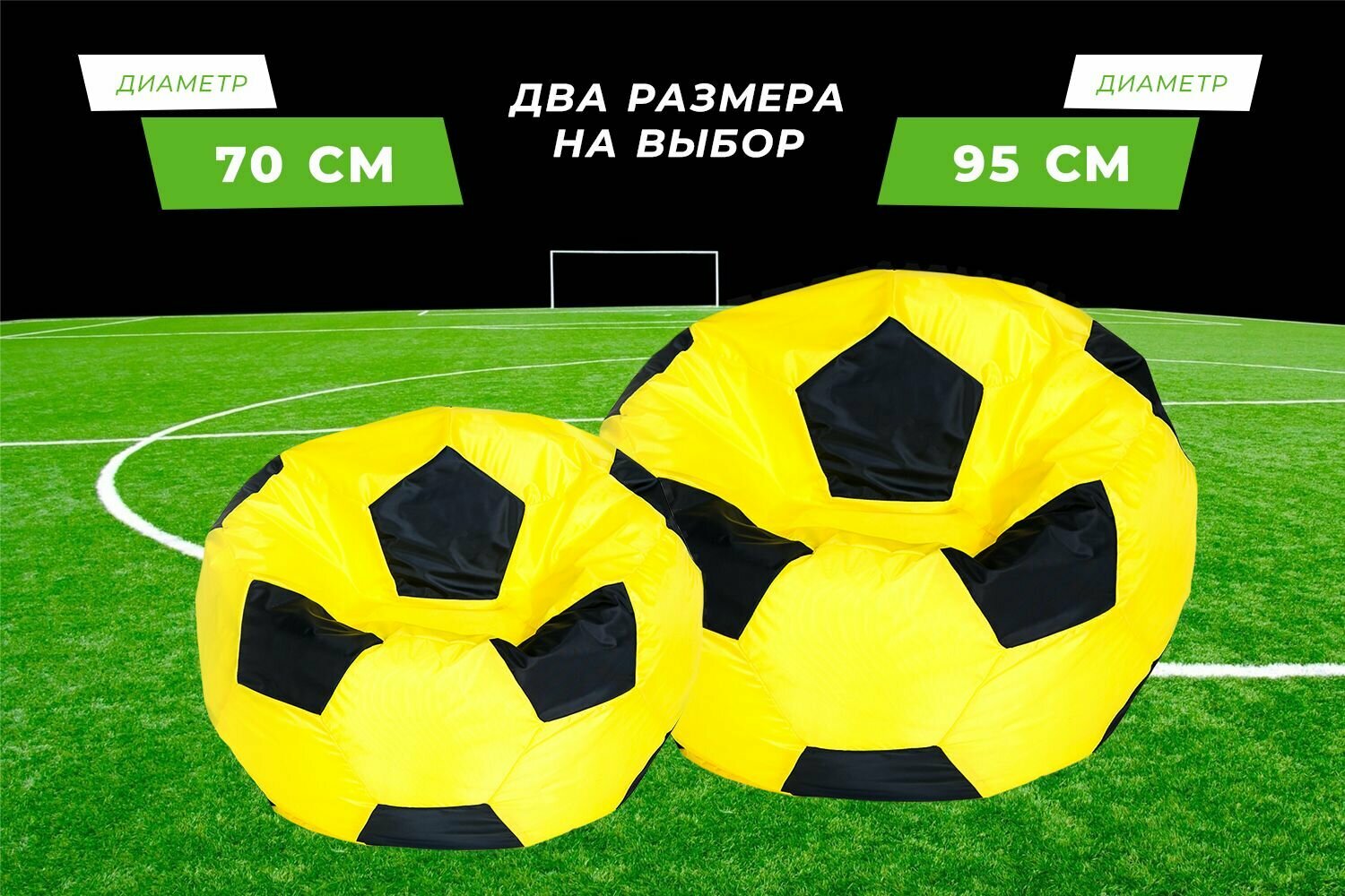 Кресло-мешок Футбольный мяч, малое 70 см, оксфорд водоотталкивающая, желто-черный интересное: