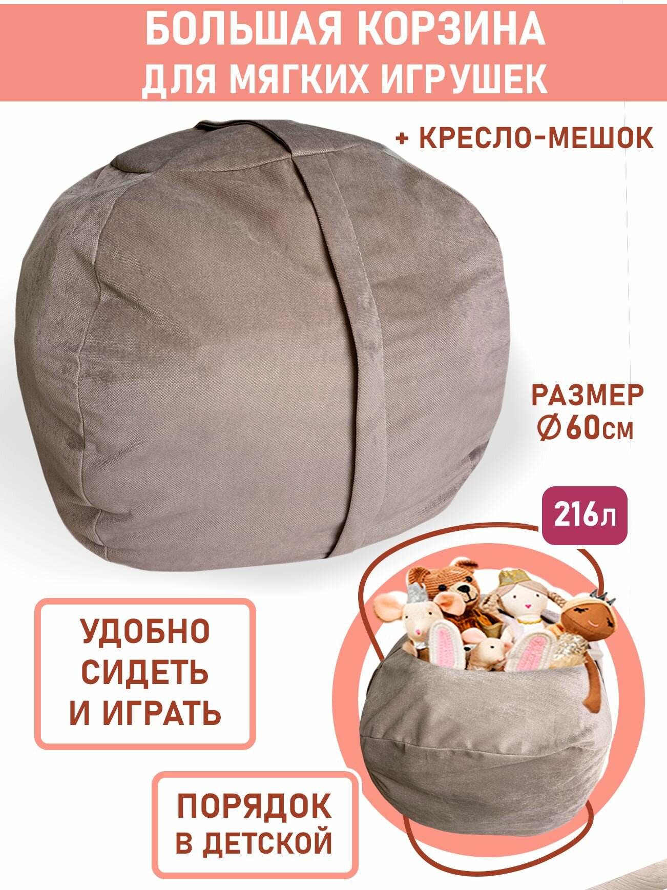 Кресло мешок детский для хранения игрушек