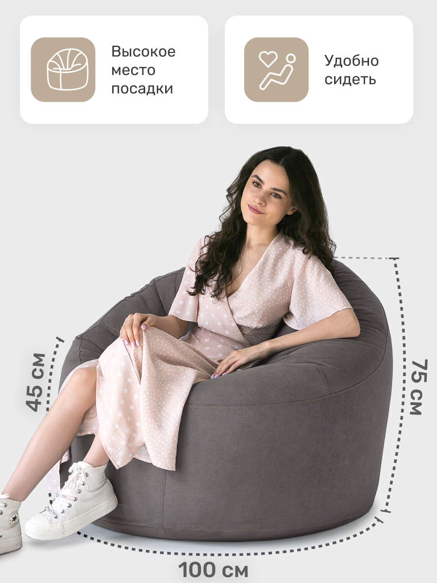 Купить Кресло мешок Laavi Home Лаунж Гранде, размер XXХХL, мебельный велюр, темно-серый