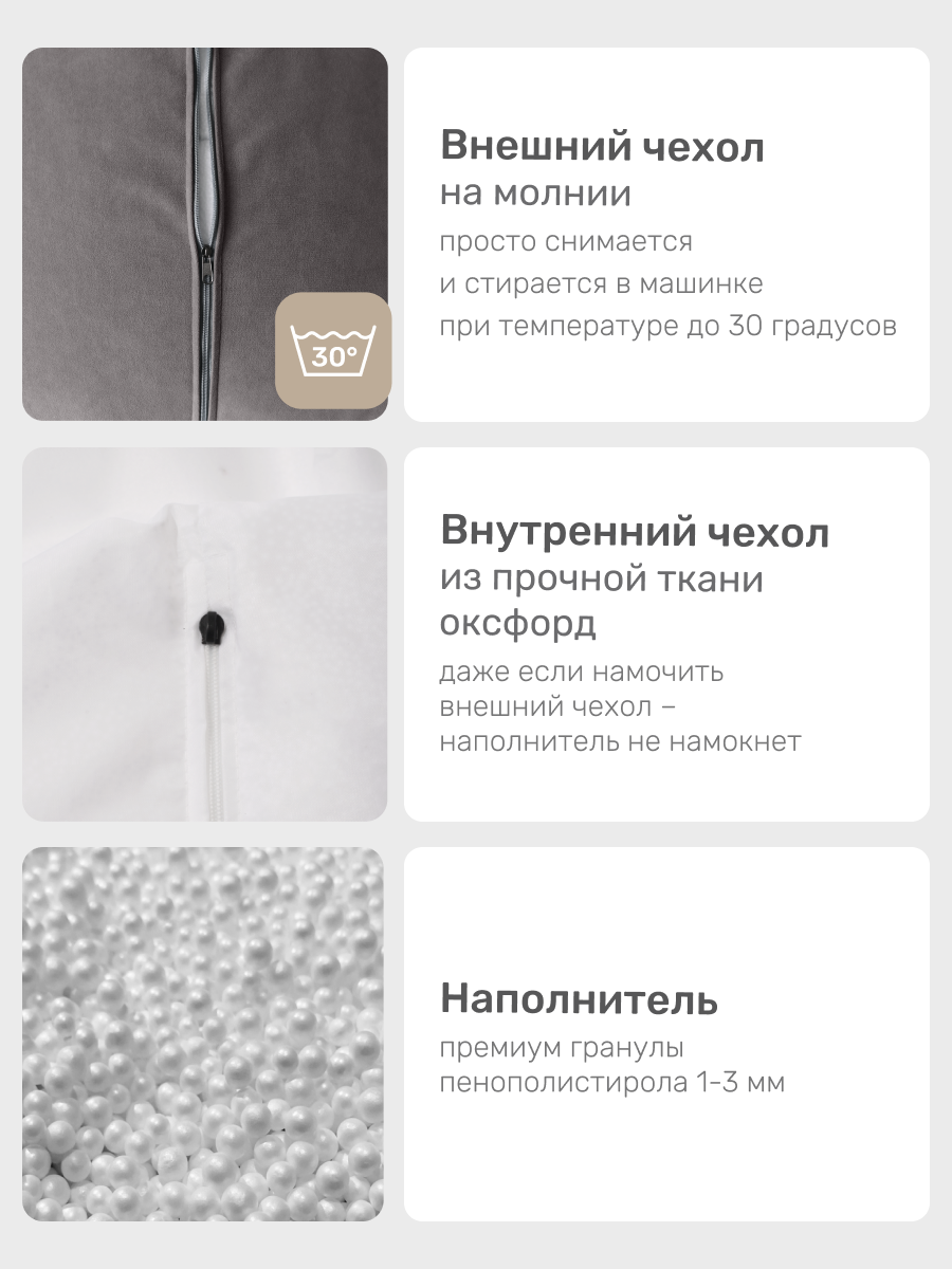 СохранитьКресло мешок Laavi Home Лаунж Гранде, размер XXХХL, мебельный велюр, темно-серый интересное: