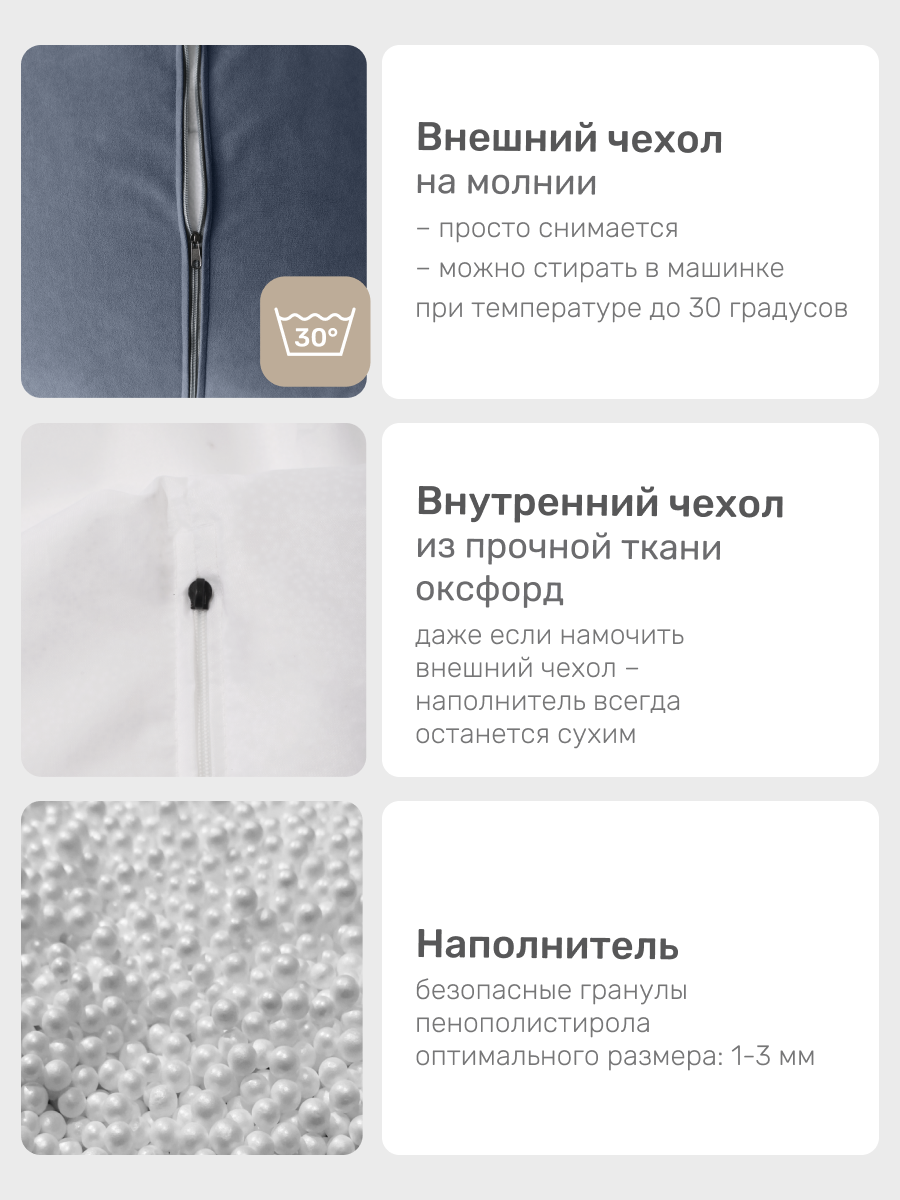 СохранитьКресло мешок Laavi Home Лаунж Гранде, размер XXХХL, мебельный велюр, пыльный синий интересное: