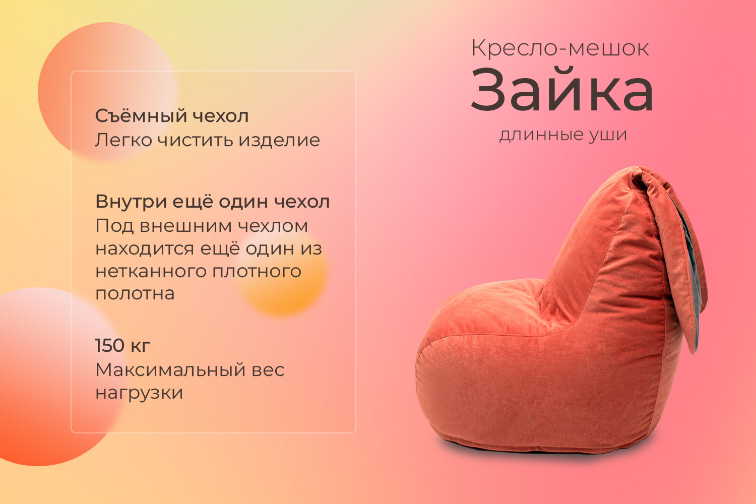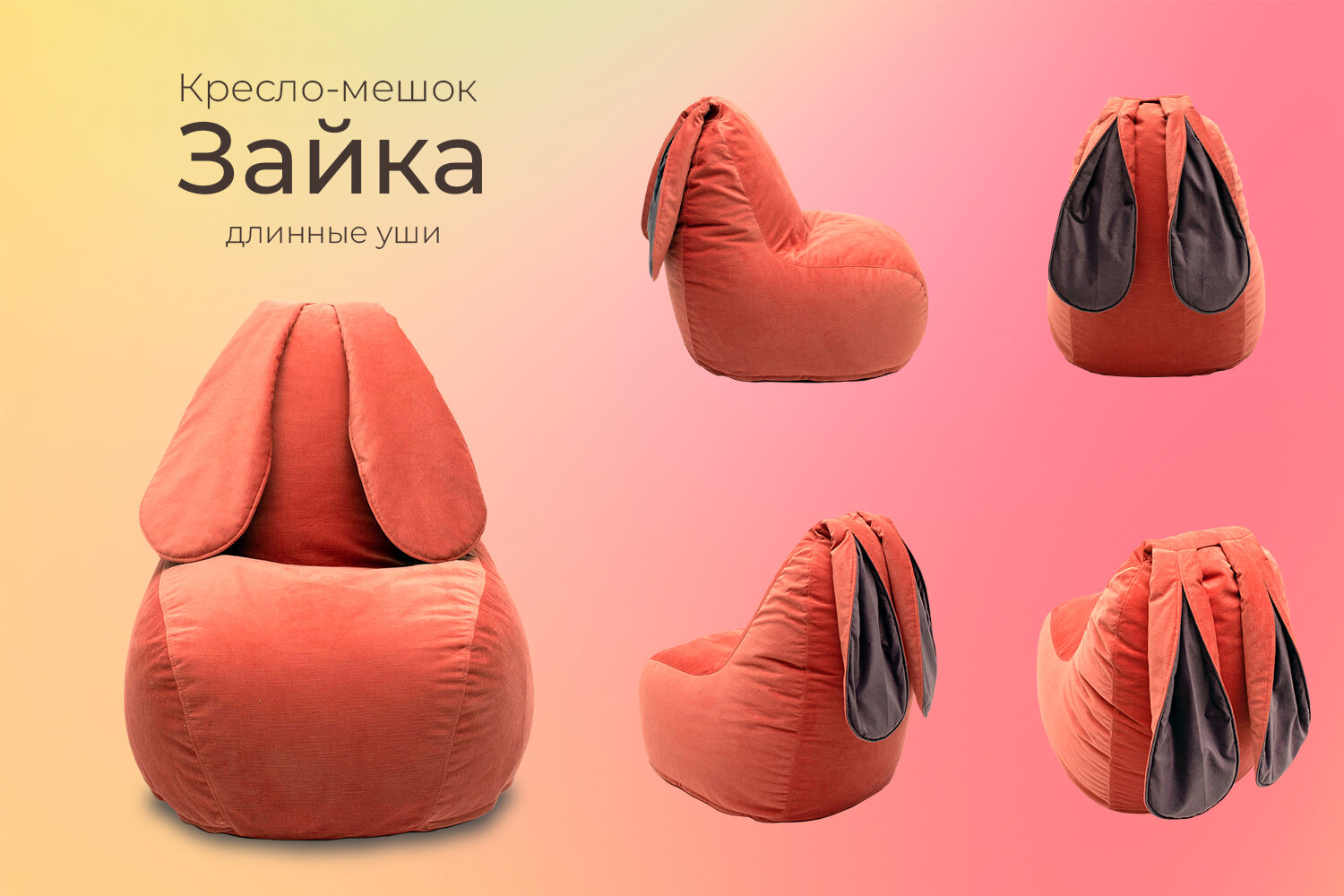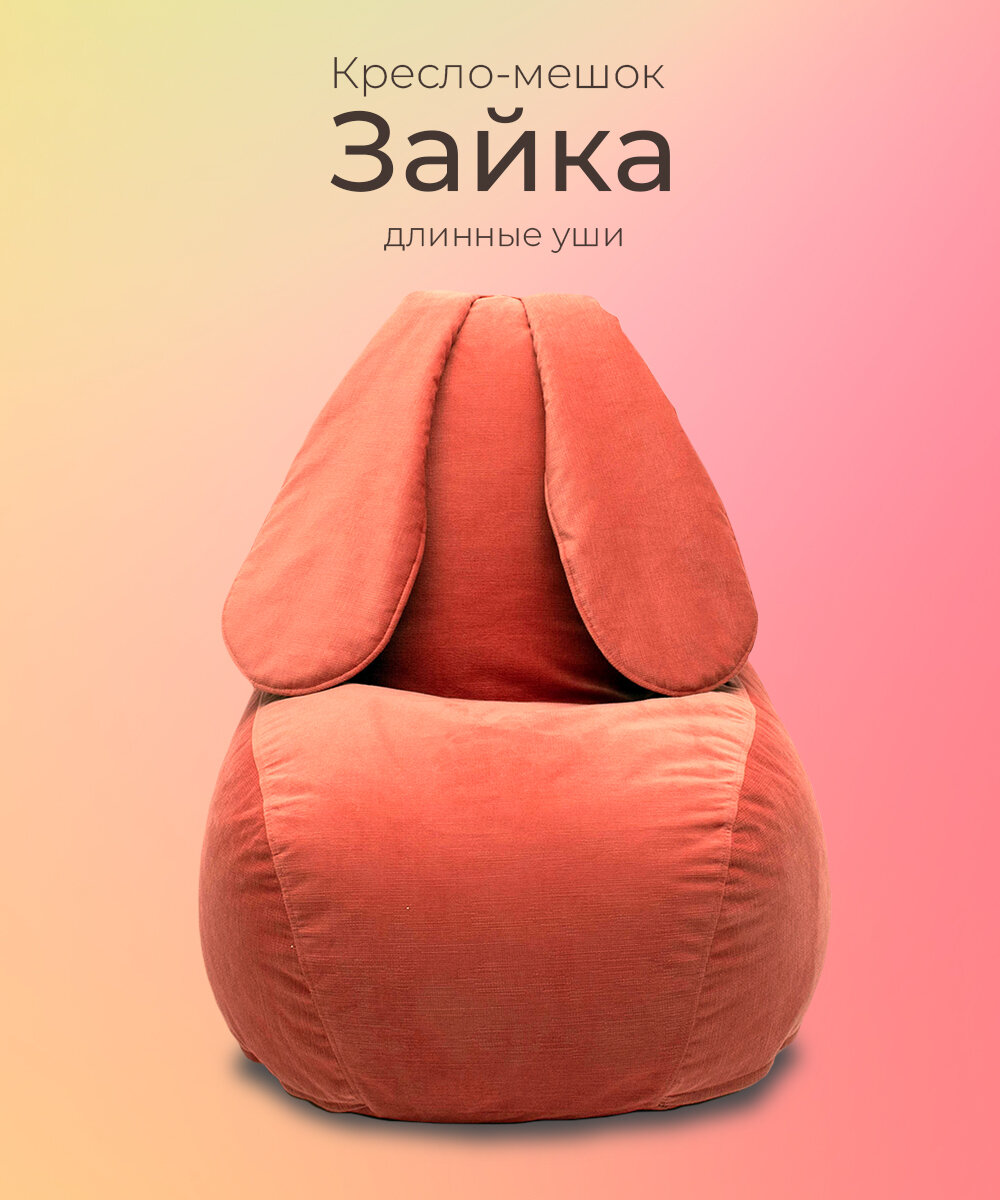 Кресло-мешок бескаркасное игровое "ЗАЙКА" большое велюр коралловый интересное: