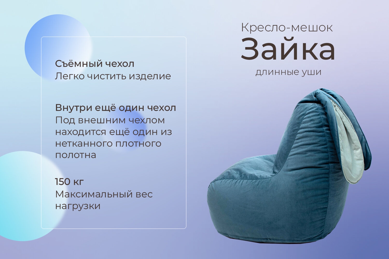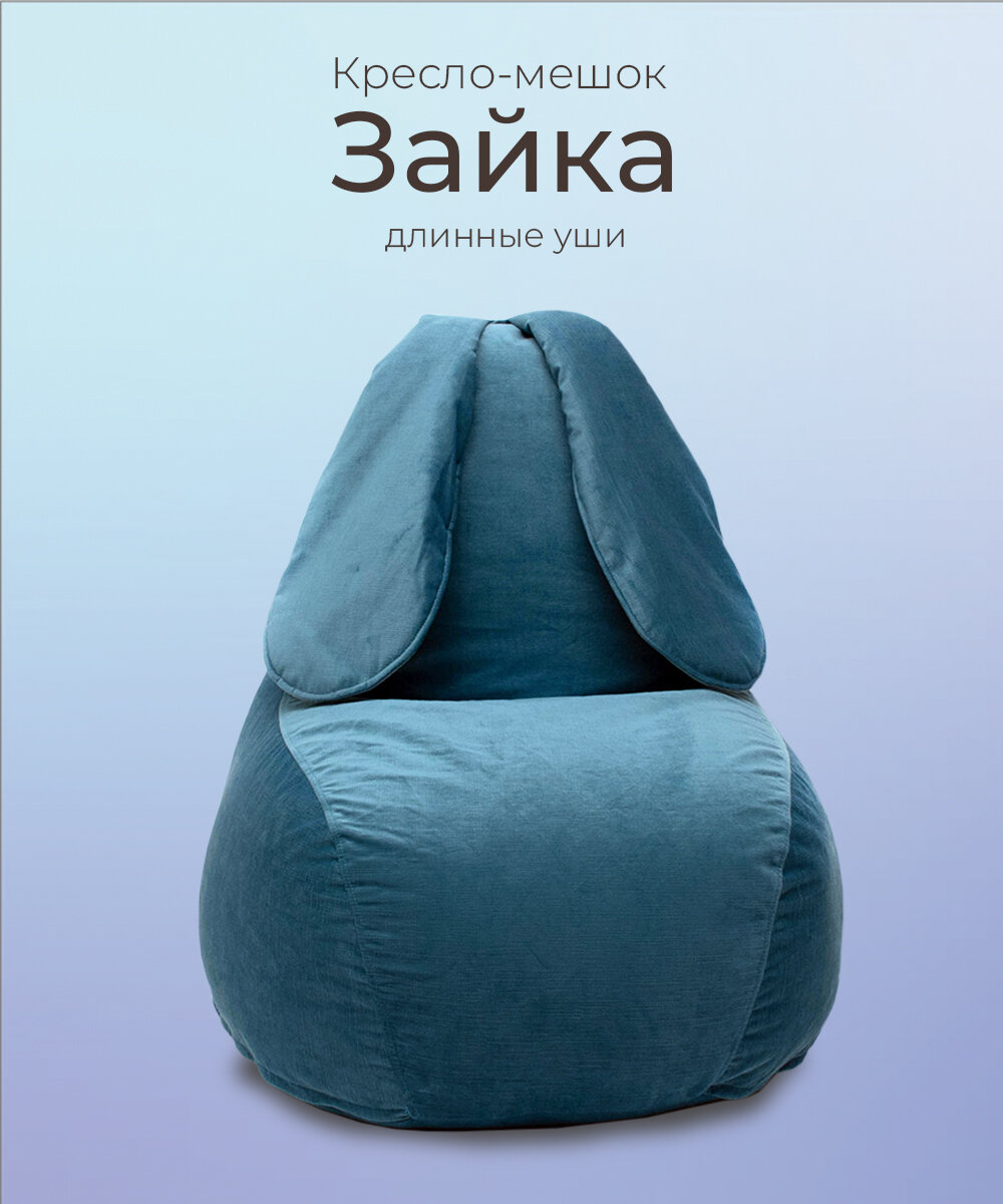 Кресло-мешок бескаркасное игровое "ЗАЙКА" большое велюр синий интересное: