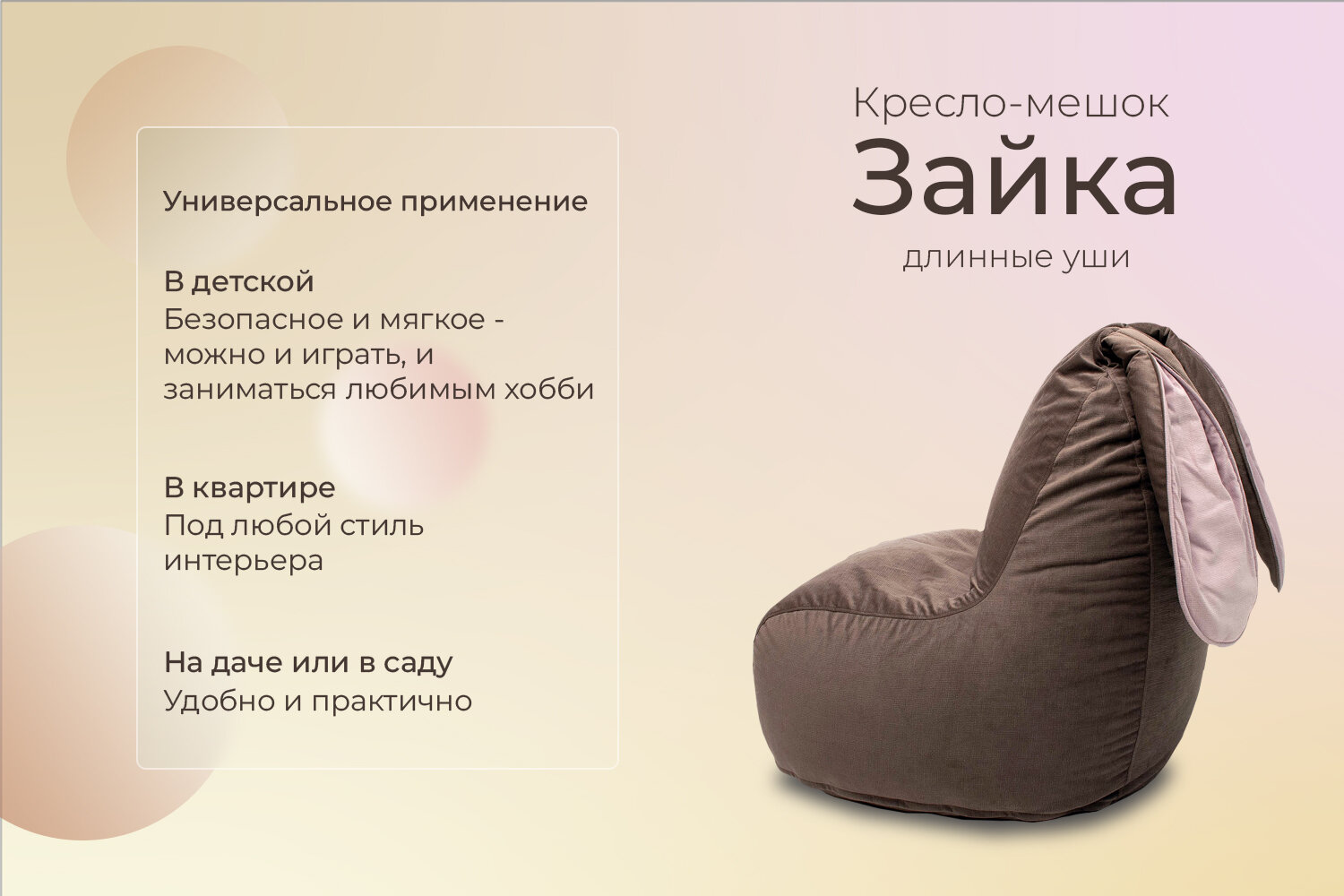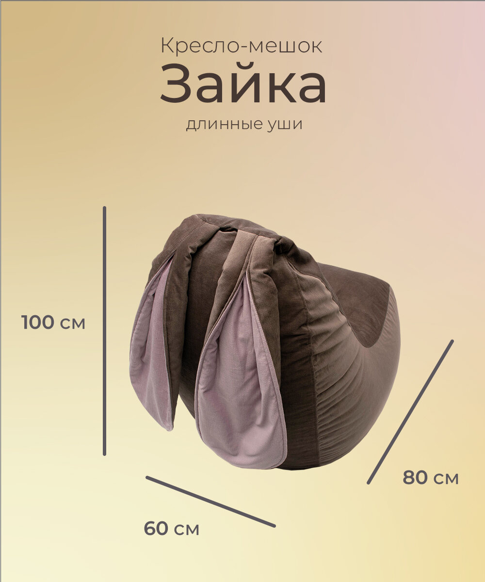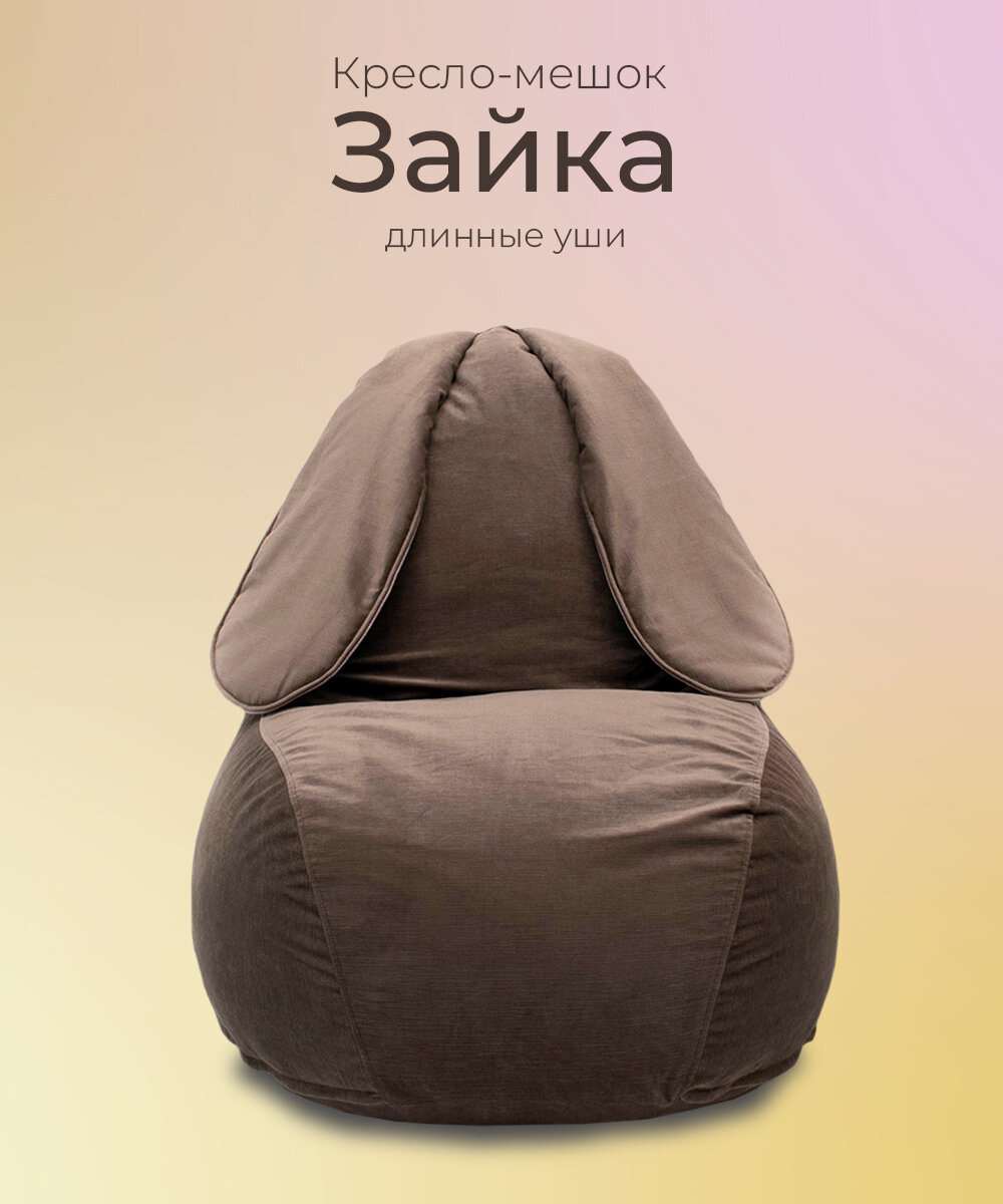 Кресло-мешок бескаркасное игровое "ЗАЙКА" большое велюр коричневый интересное: