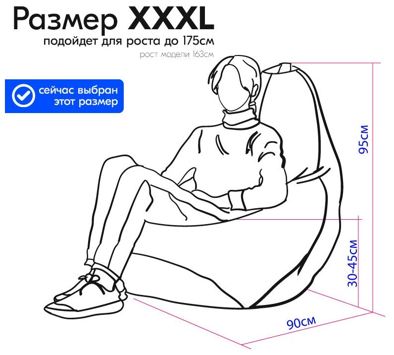 Кресло-мешок Груша черный цвет (размер XXXL) PuffMebel, ткань Дюспо