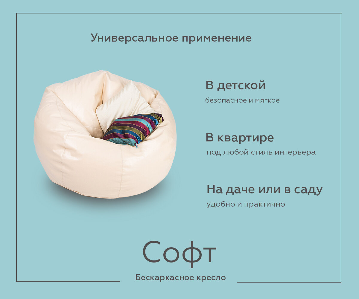 Кресло-мешок WOWPUFF "Софт ПРЕМИУМ", Экокожа, Размер XXXXXL, съемный чехол интересное: