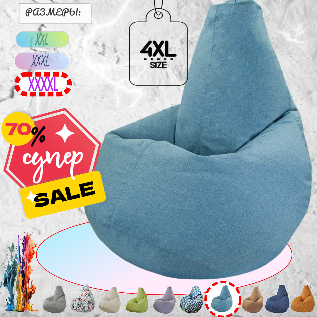 Кресло-мешок Груша рогожка, голубой цвет (размер XXXL), PuffMebel