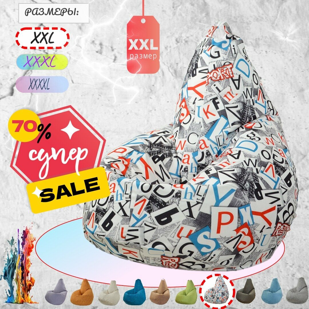 Кресло-мешок Груша рогожка, цвет с буквами (размер XXXXL), PuffMebel