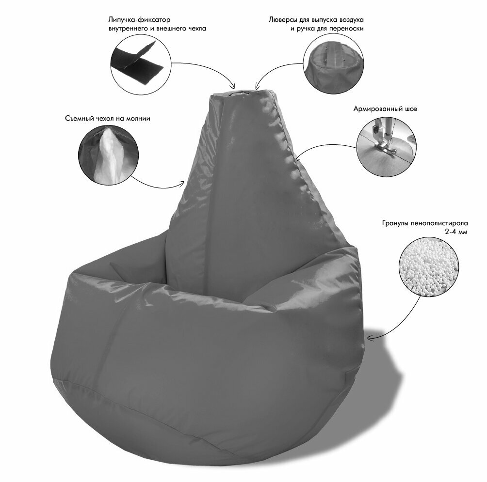 Кресло-мешок Груша рогожка, цвет светло-серый (размер XXL), PuffMebel