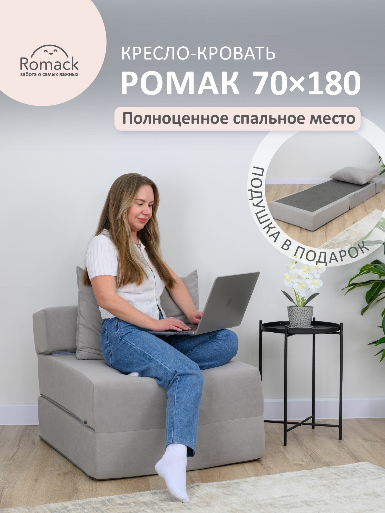 Купить Кресло-кровать, пуфик Romack, 70x80x60, съемные чехлы из велюра, серый пух