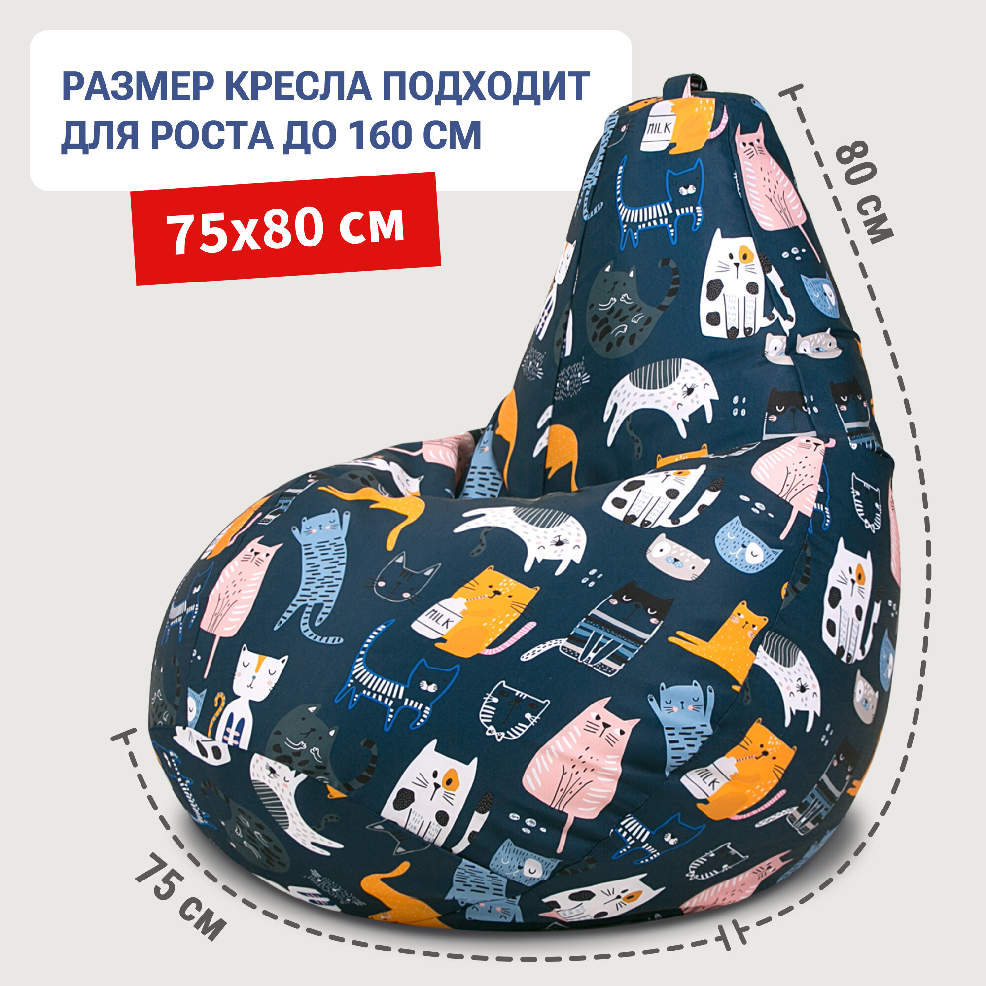 Купить Кресло мешок Bean Joy кресло груша, размер ХXL, мебельный хлопок, Коты непоседы синие