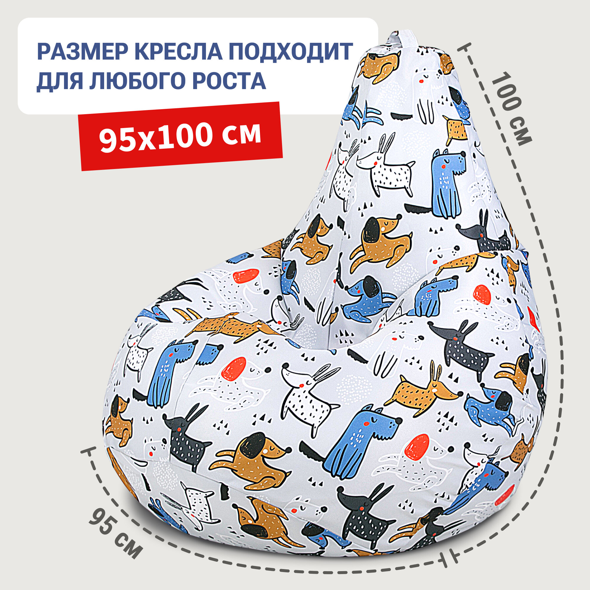 Купить Кресло мешок Bean Joy кресло груша, размер ХXХXL, мебельный хлопок, Веселье собачки