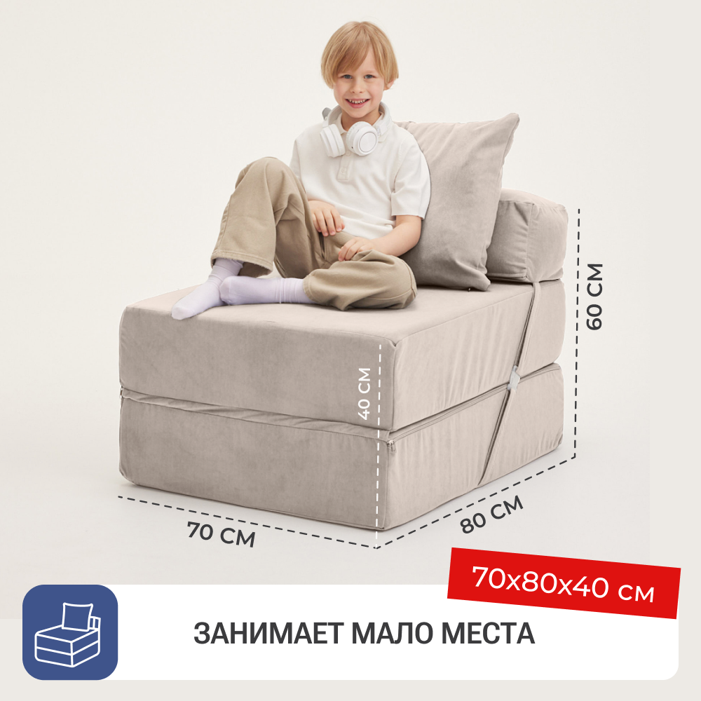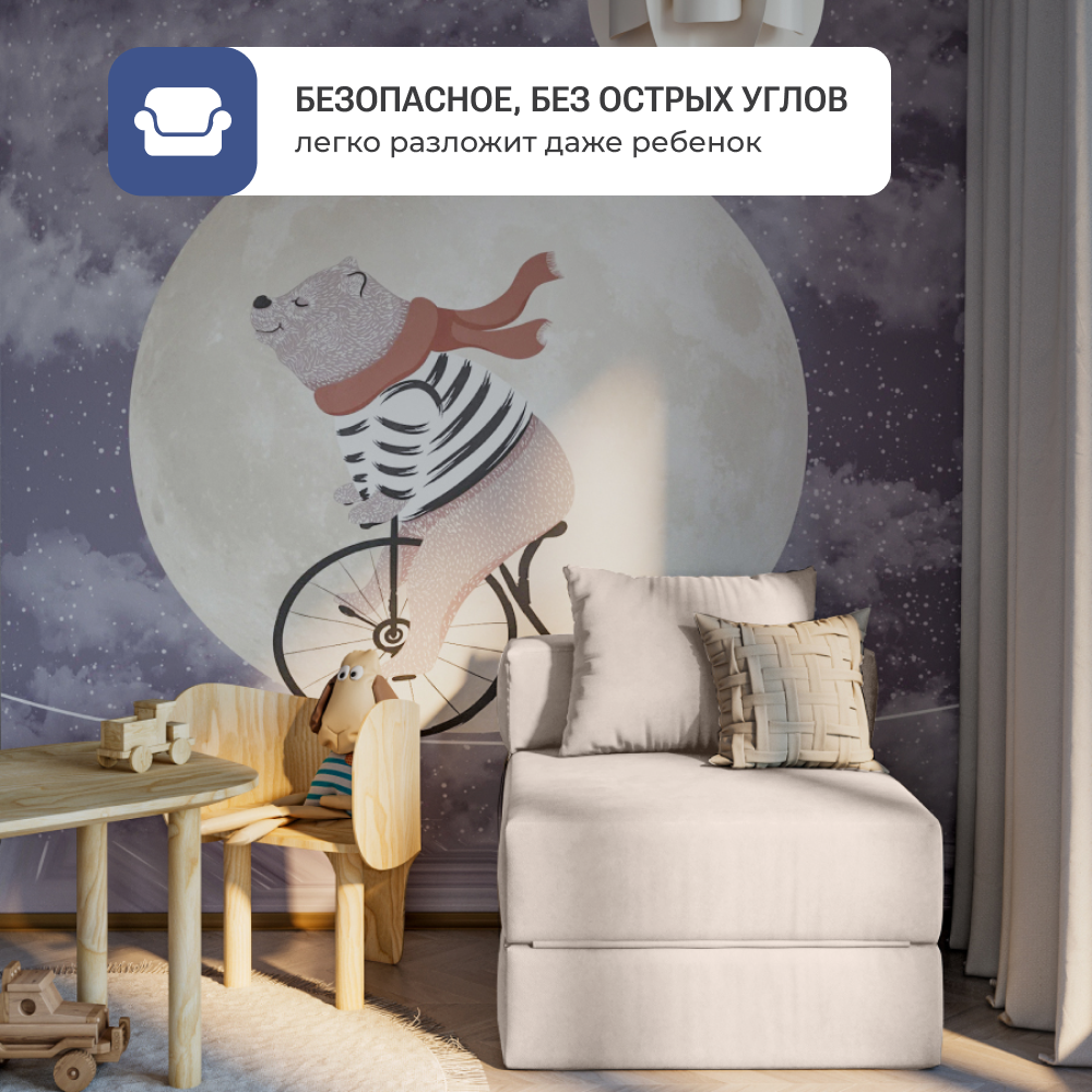 СохранитьКресло кровать раскладное Bean Joy, размер ХXXХL, мебельный велюр, Кремовый интересное: