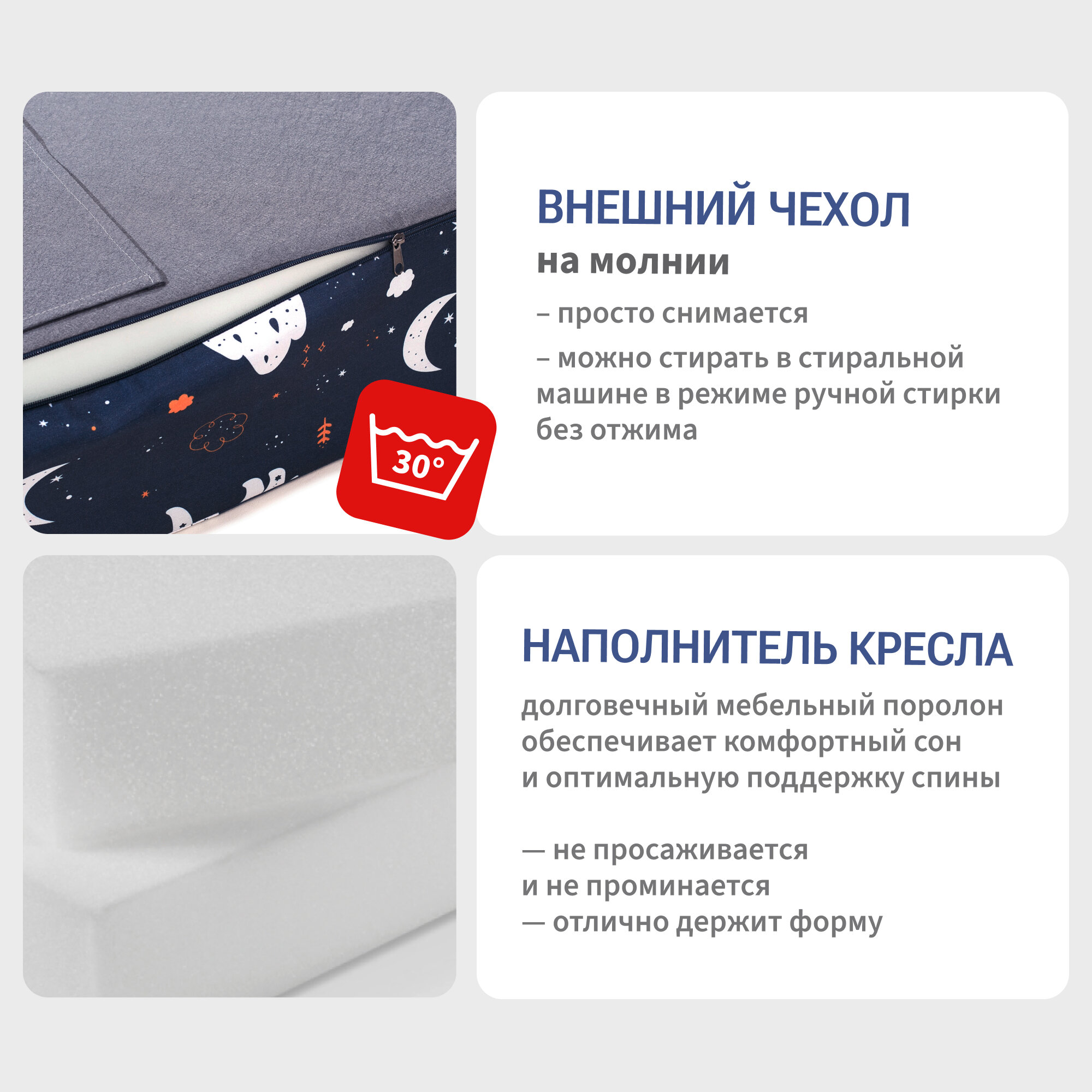 Кресло кровать раскладное Bean Joy, размер ХXXХL, мебельный хлопок, Космос