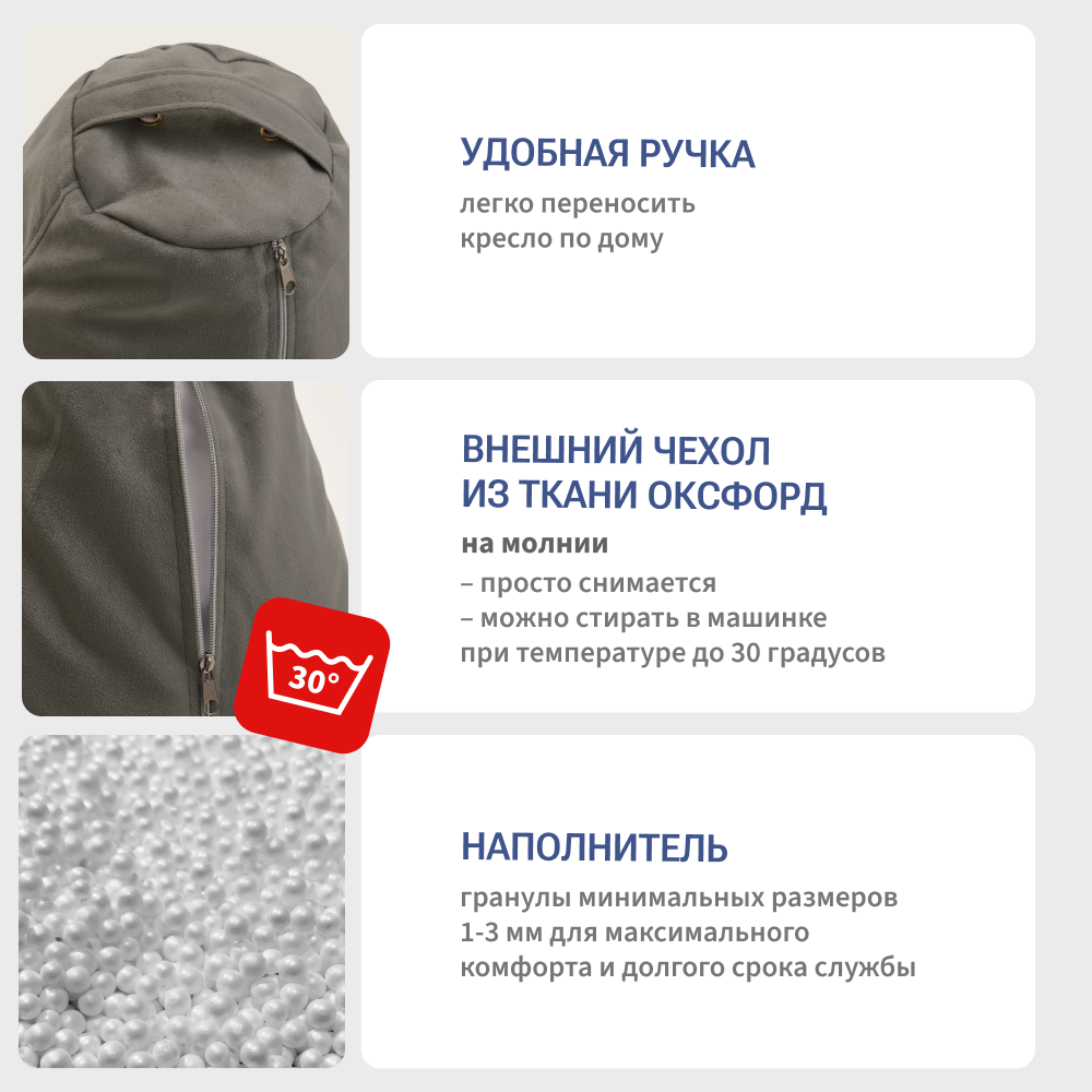 СохранитьКресло мешок Bean Joy кресло груша, размер ХXL, мебельный велюр, светло серый интересное: