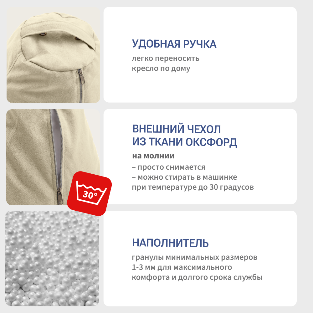 СохранитьКресло мешок Bean Joy кресло груша, размер ХXL, мебельный велюр, латте интересное: