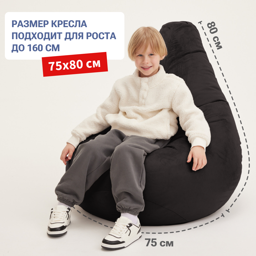 Кресло мешок Bean Joy кресло груша, размер ХXXL, мебельный велюр, черный