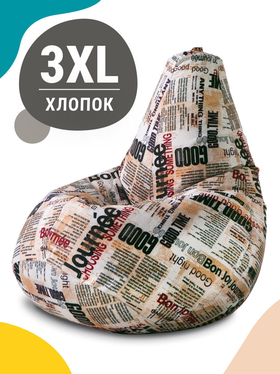 Купить Кресло мешок MyPuff кресло груша, размер ХХХL Стандарт, мебельный хлопок, газета