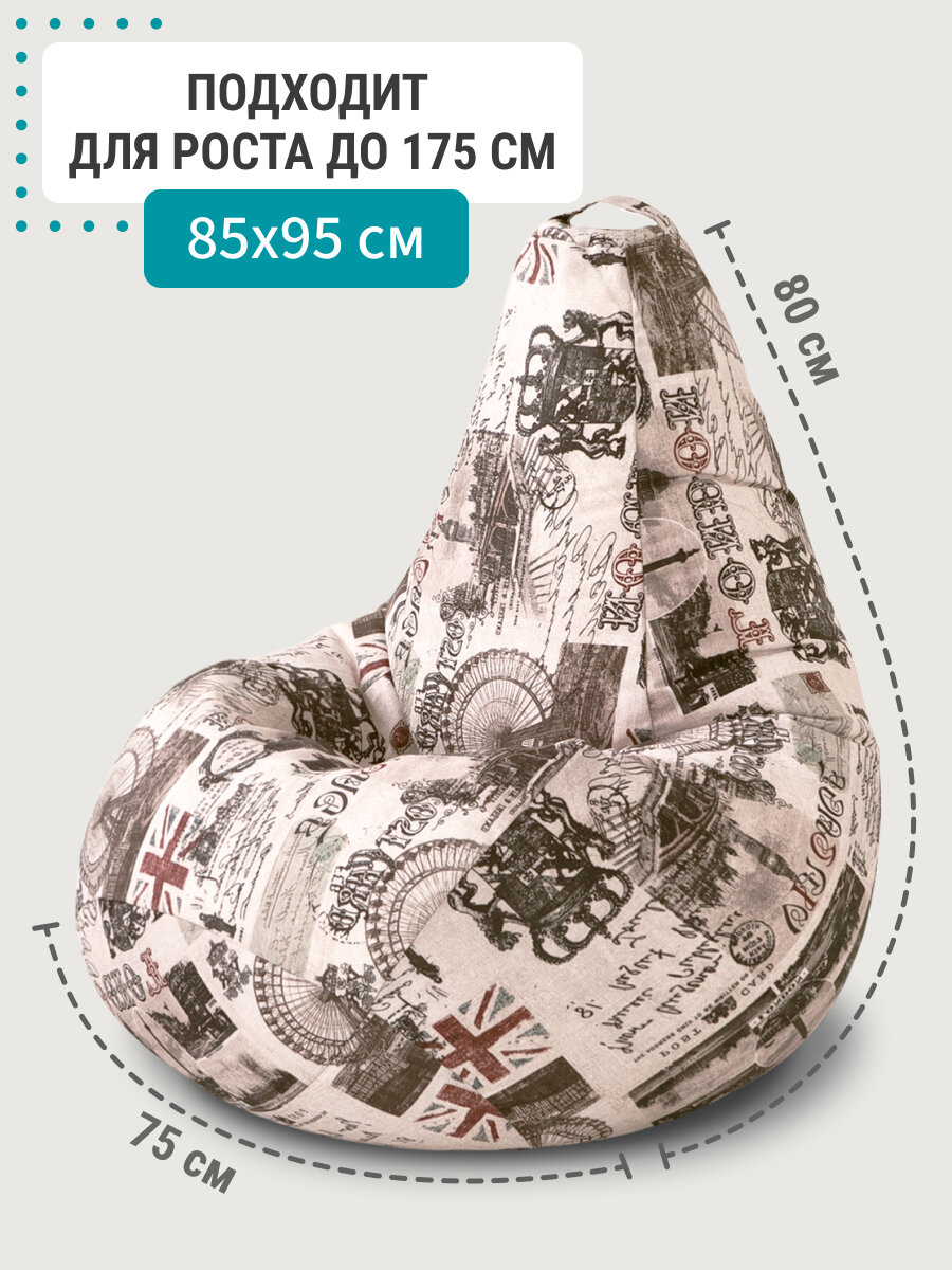 Кресло мешок MyPuff кресло груша, размер ХХХL Стандарт, мебельный хлопок, газета