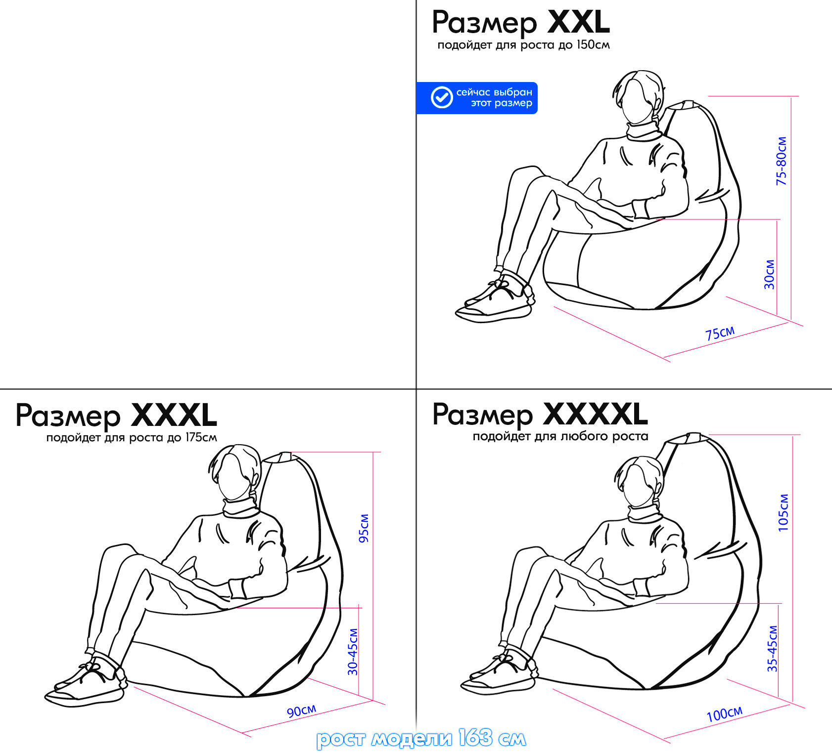 Кресло-мешок Груша велюр, цвет василек (размер XXXXL), PuffMebel