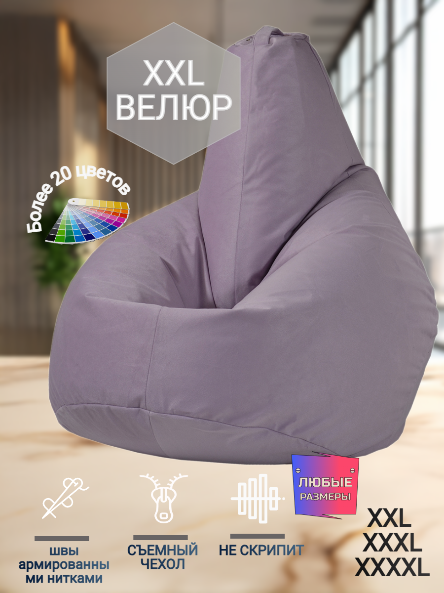 Кресло-мешок Груша велюр, цвет фиолетовый (размер XXL), PuffMebel