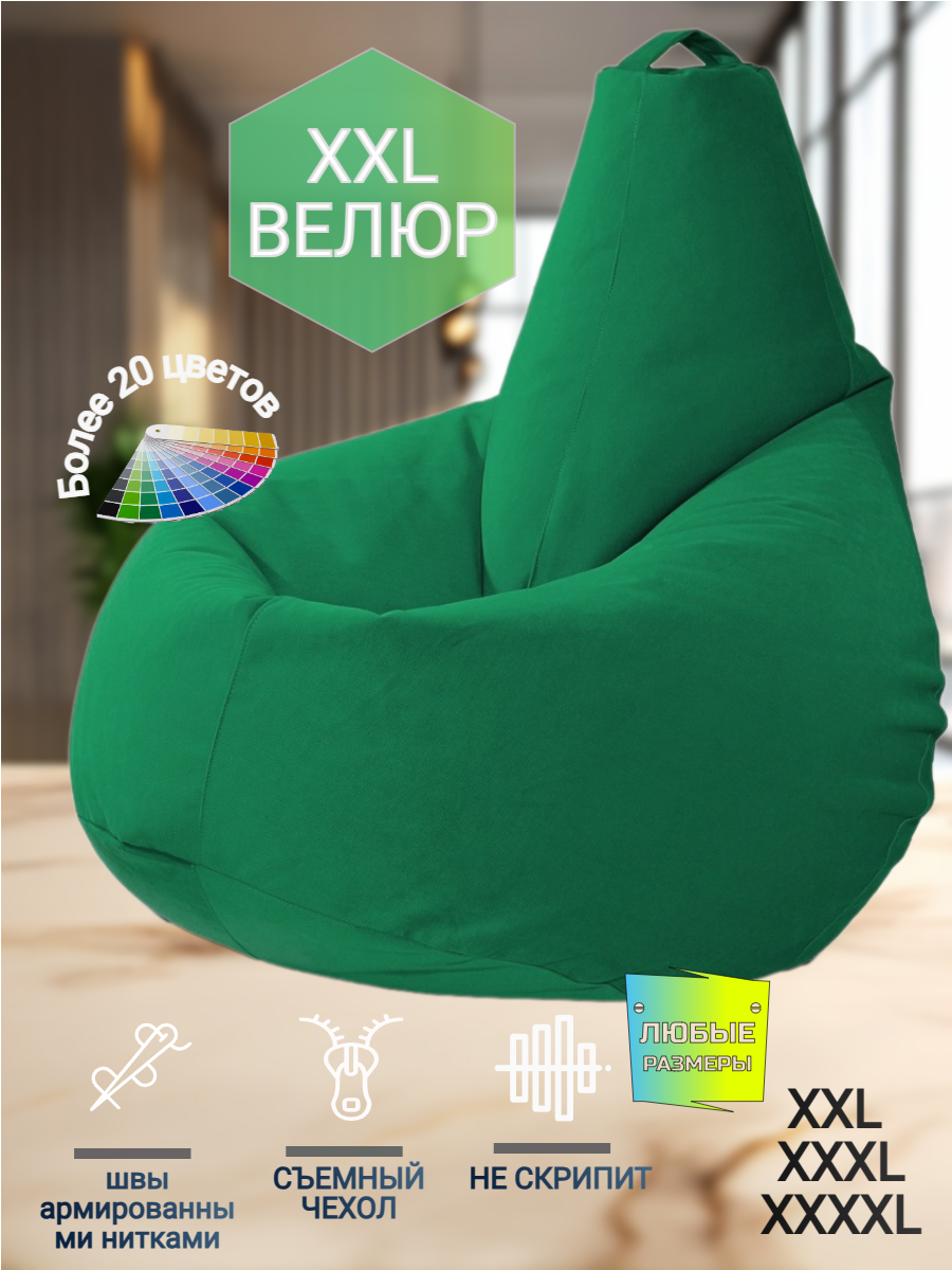 Кресло-мешок Груша велюр, цвет зеленый (размер XXXL), PuffMebel