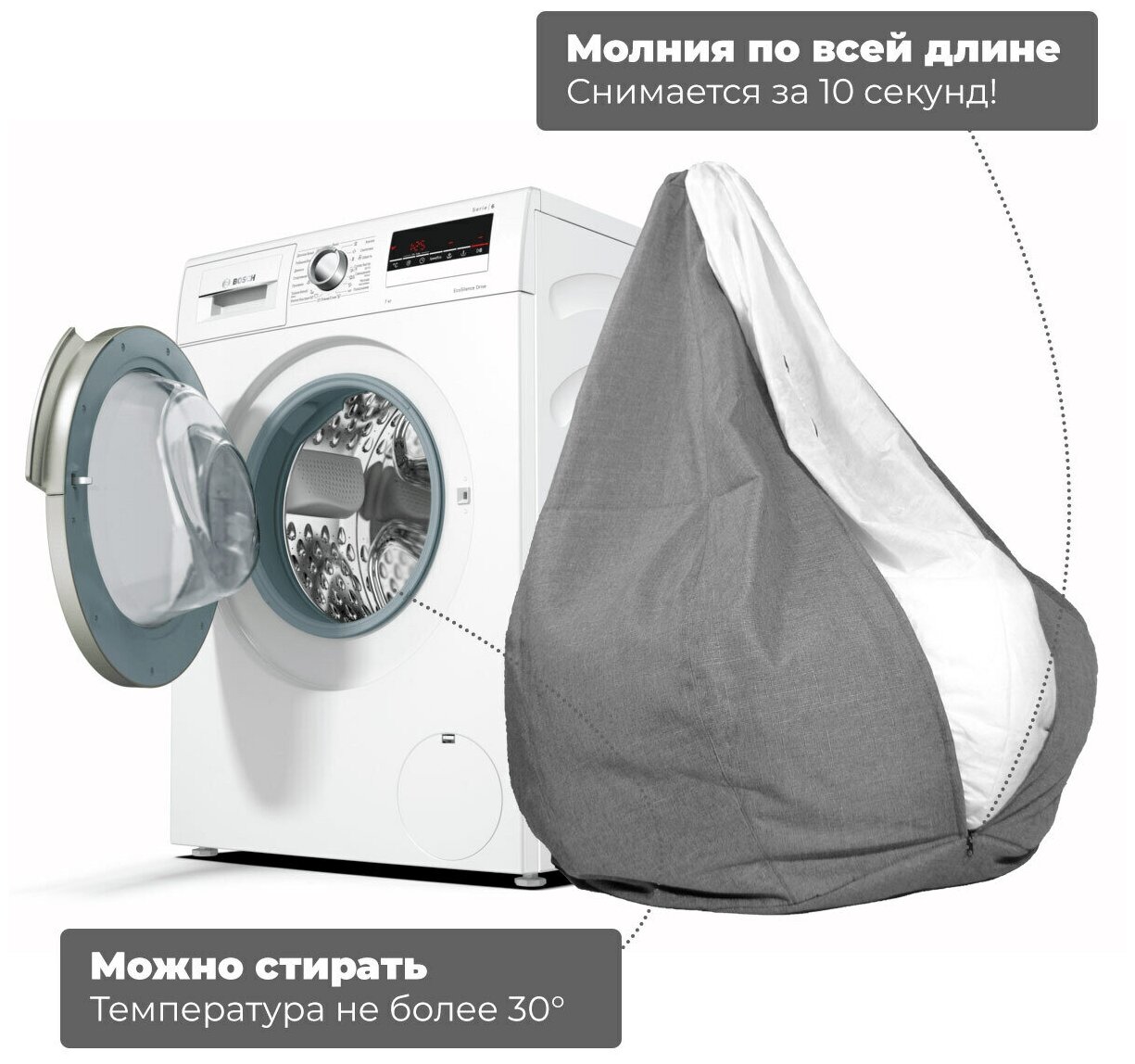 Кресло-мешок Груша велюр, цвет тёмно-серый (размер XXL), PuffMebel