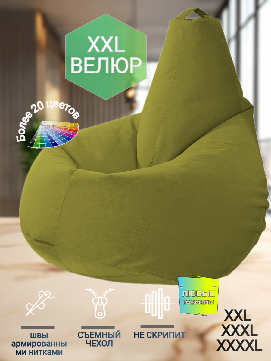 Кресло-мешок Груша велюр, цвет оливковый (размер XXXXL), PuffMebel