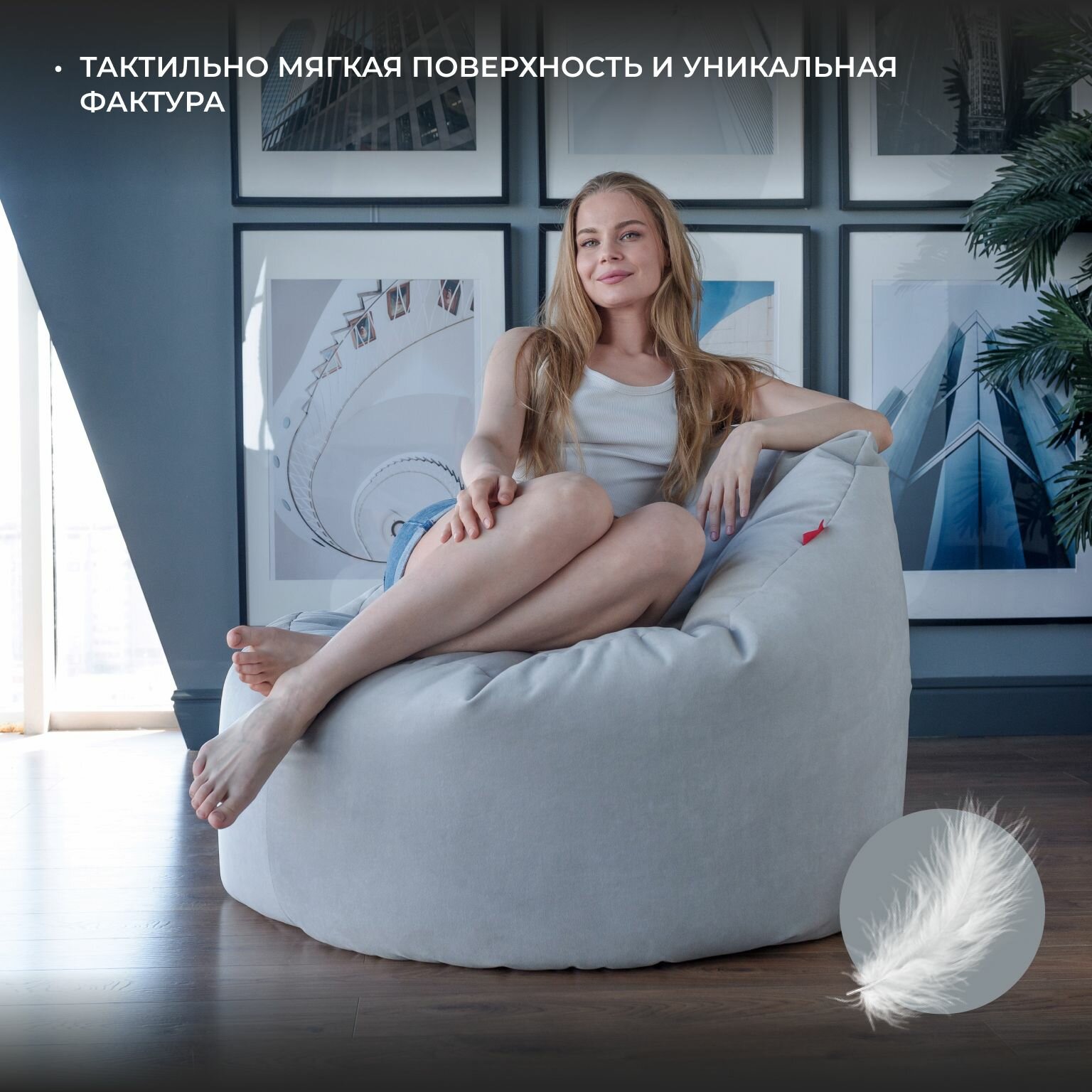 Купить Бескаркасное кресло Myakish "Прайм", велюр, размер XXXL, максимальная нагрузка 150кг, серое