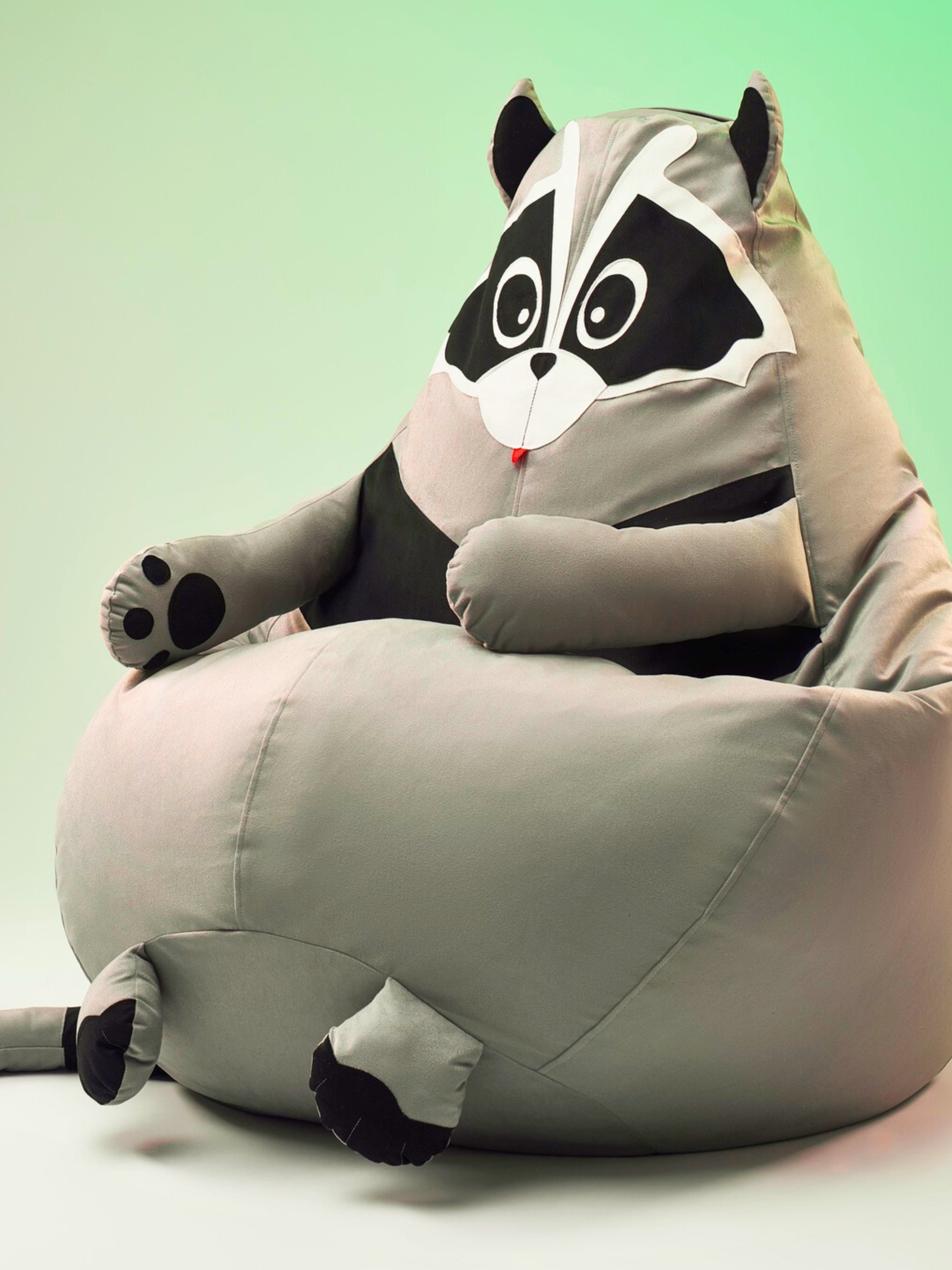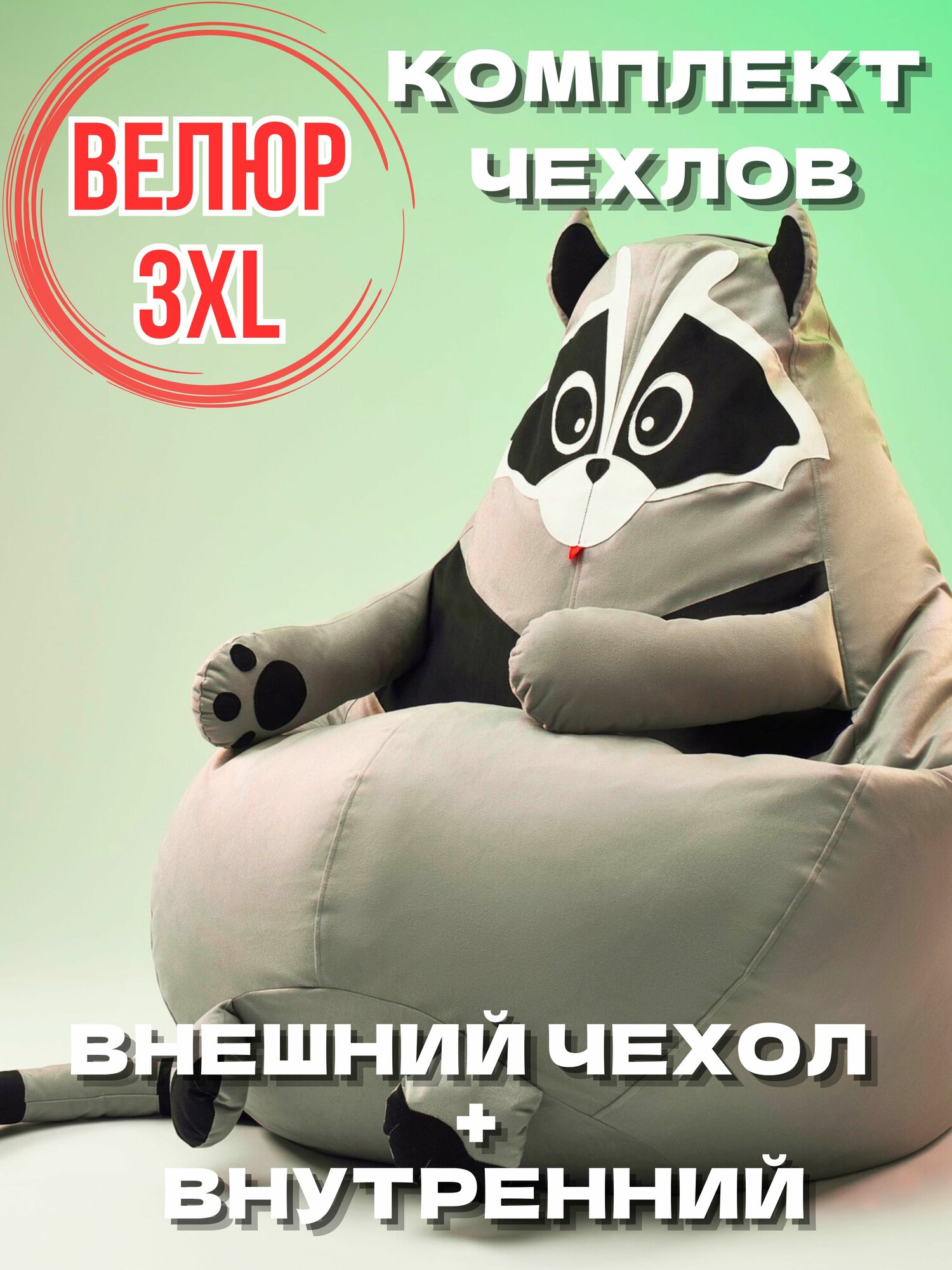 Кресло-мешок игрушка Енот 4XL без наполнителя, Комплект чехлов из велюра / спанбонда, съёмный, корзина для игрушек XXXXL