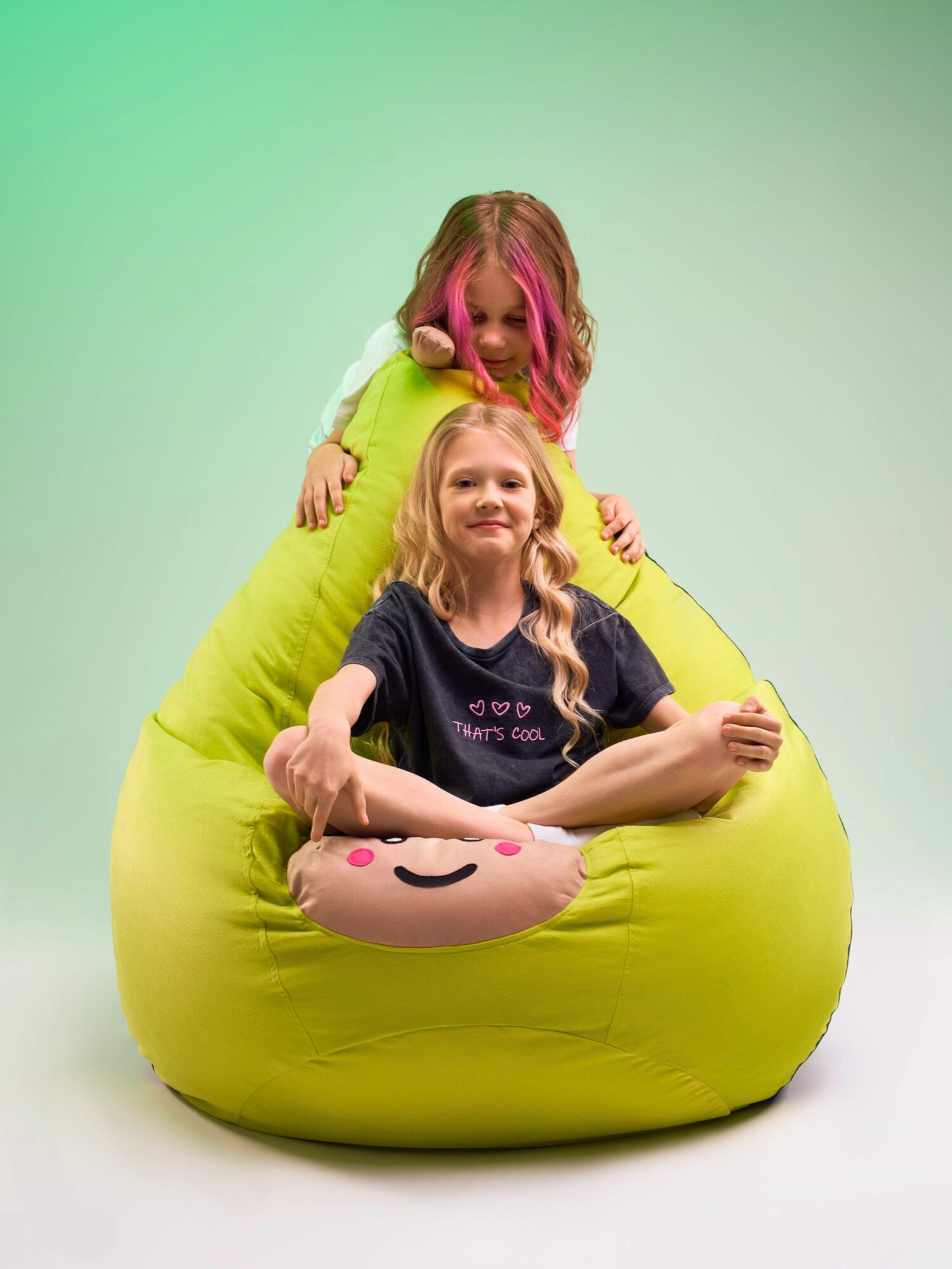 Кресло-мешок игрушка Авокадо 3XL без наполнителя, Комплект чехлов из мебельного велюра и спанбонда, корзина игрушек XXXL
