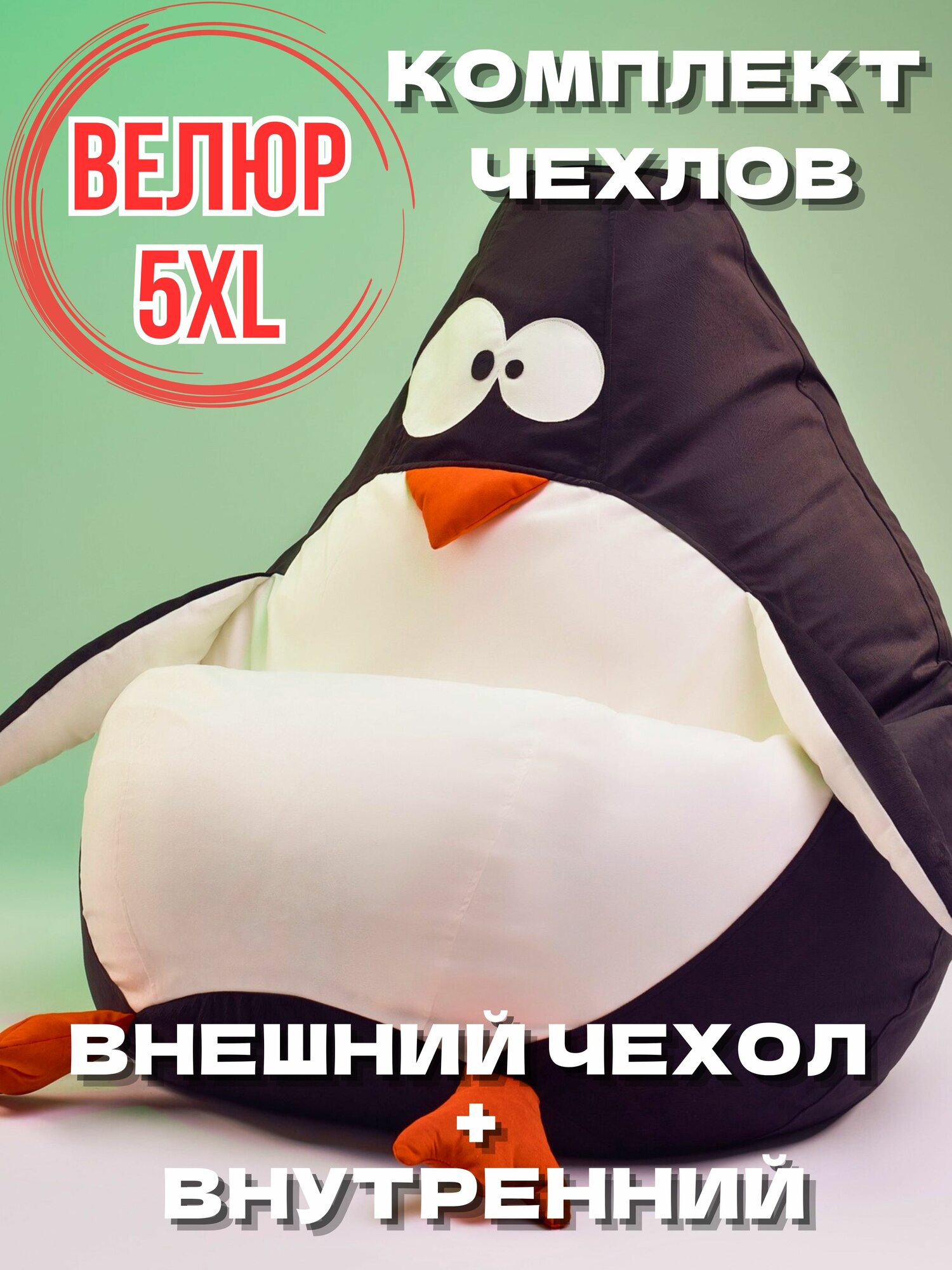 Кресло-мешок игрушка Пингвин 4XL без наполнителя, Комплект чехлов из мебельного велюра / спанбонда, съемный, груша XXXXL