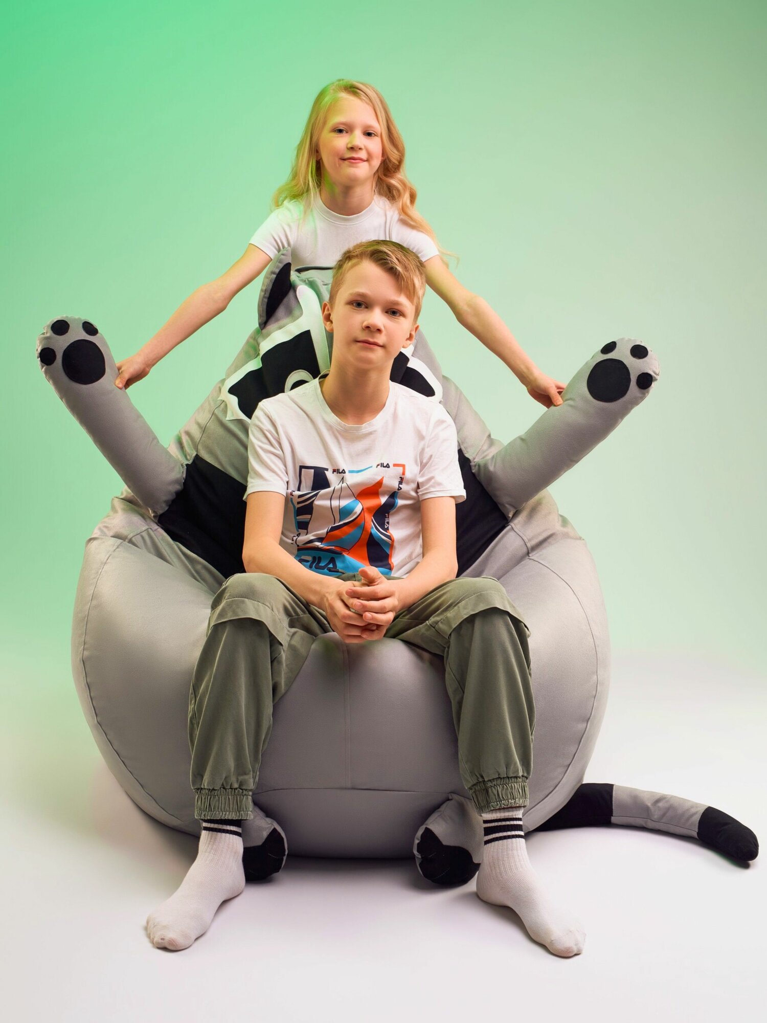 Кресло-мешок игрушка Кот 4XL без наполнителя, Комплект чехлов из мебельного велюра / спанбонд, корзина для игрушек XXXXL