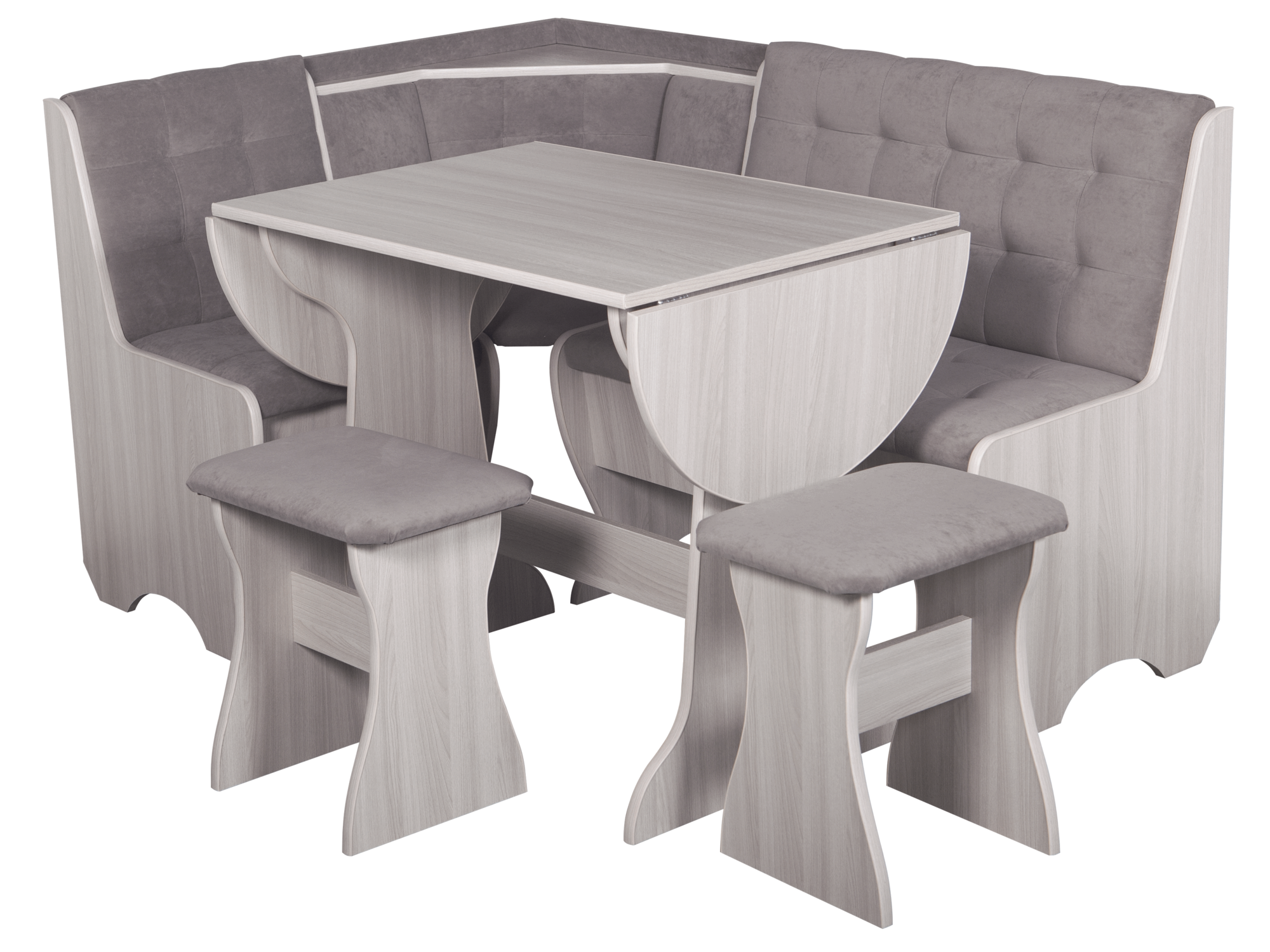 Кухонный уголок "Стиль-1Л" ясень шимо светлый/велюр Т5 беж, с раскладным столом и табуретками интересное: