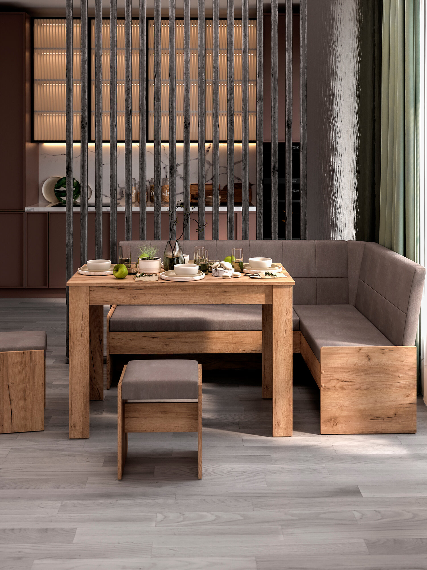 Купить Кухонный уголок Мебель Трия "Пекин", микровелюр, дуб крафт золотой