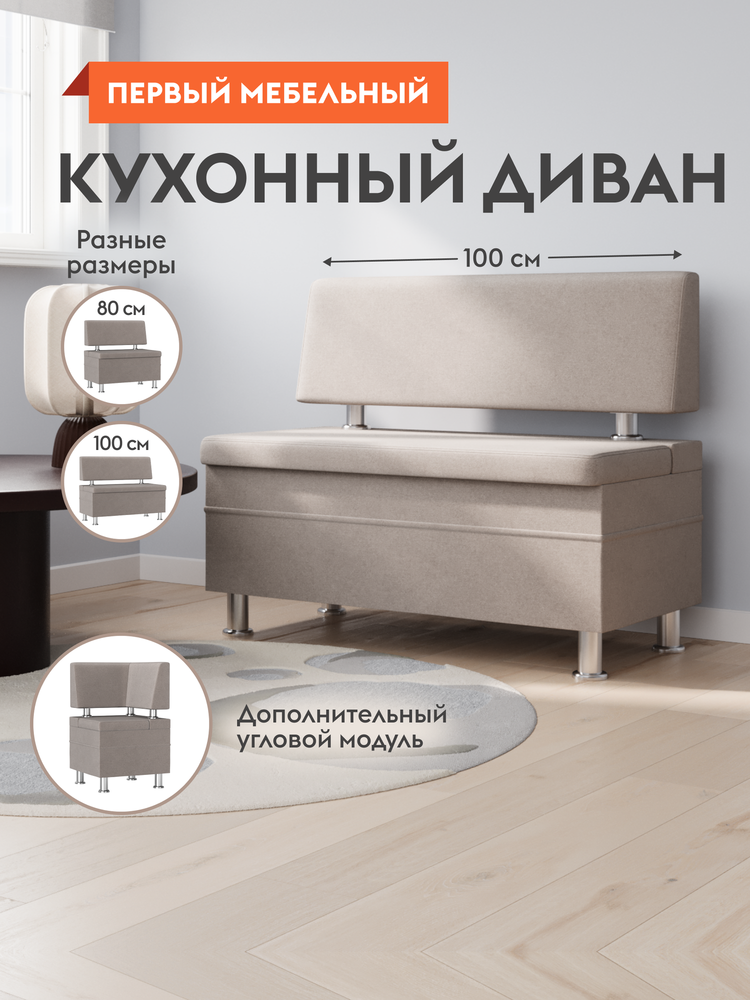 Кухонный диван, уголок Лакки с ящиком для хранения, 100х47х81.5 см, Бежевый, велюр