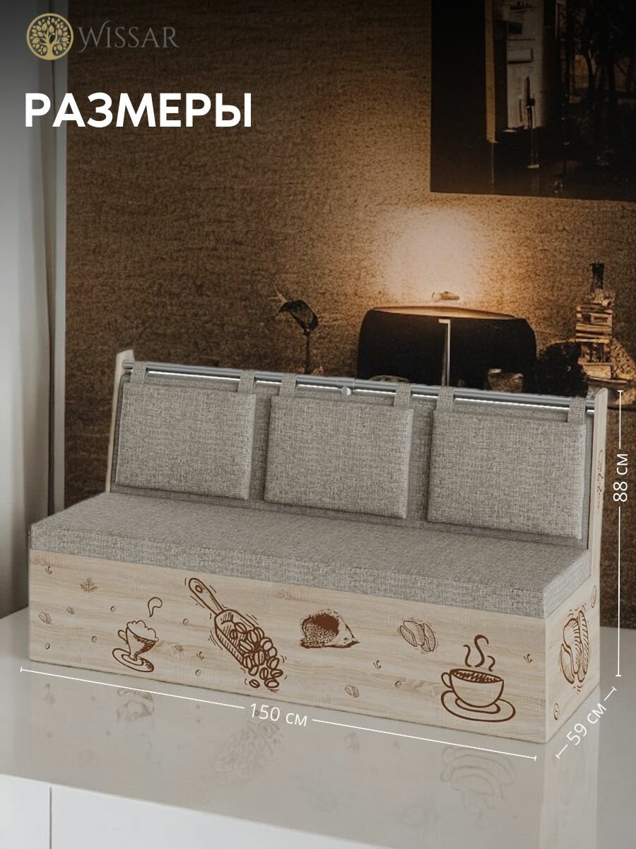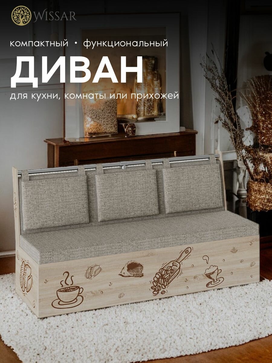 Диван на кухню прямой, кухонный диван с ящиком "Роденго" - дуб сонома/ТК рогожка бежевый интересное: