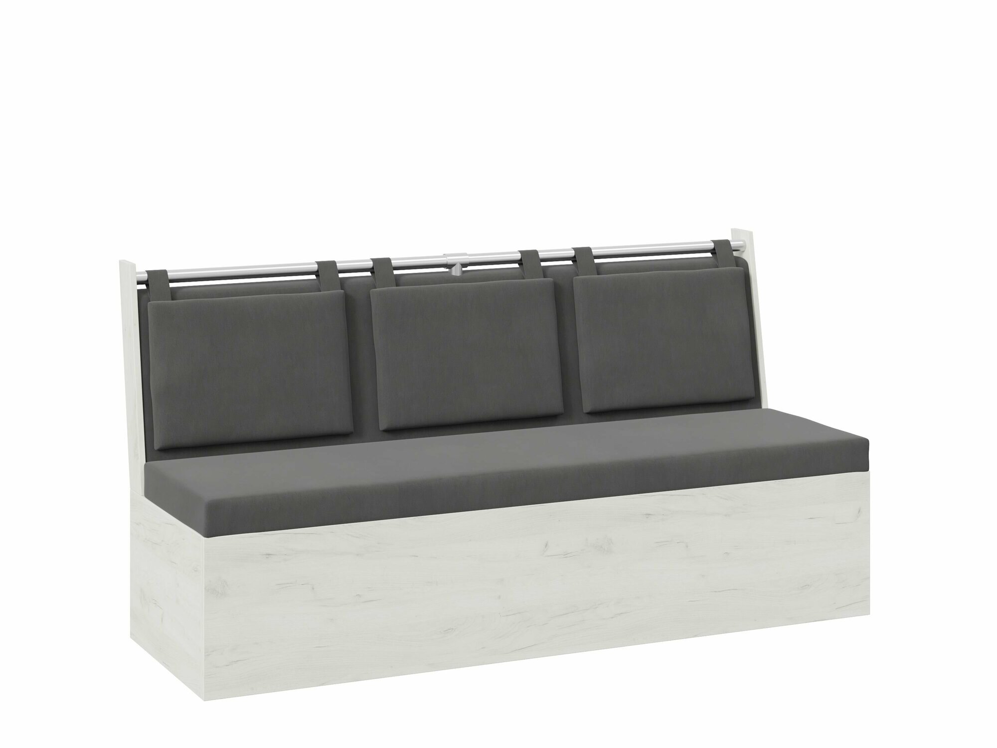Купить Диван на кухню прямой, кухонный диван с ящиком "Роденго" - дуб крафт белый/ТК рогожка серая