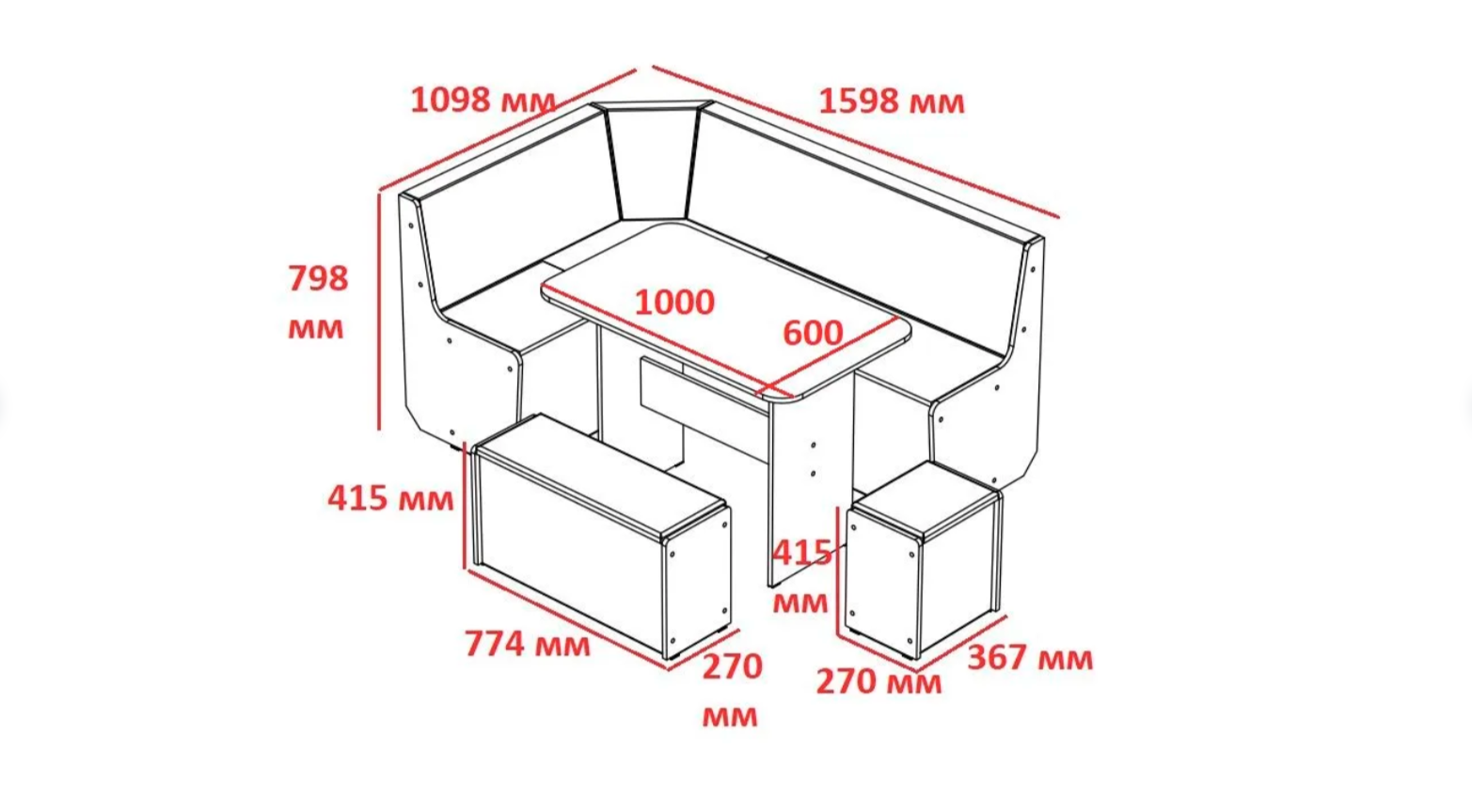 Кухонный уголок набор Стиль-3, с прямоугольным столом и двумя табуретами, лдсп венге/рогожка чёрно-серая