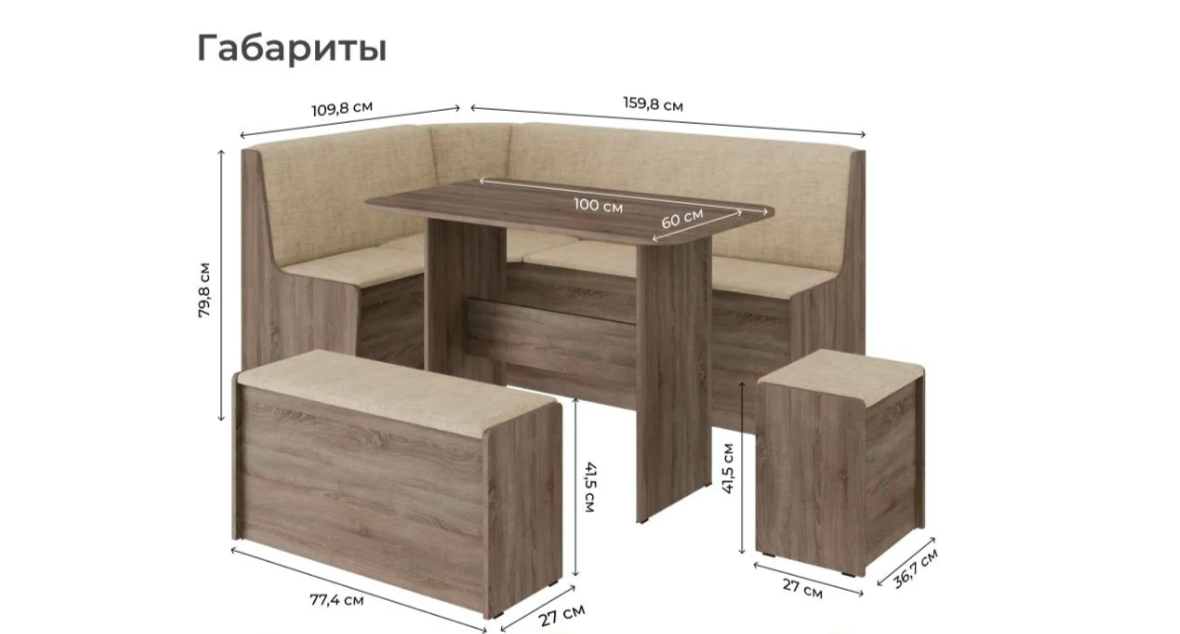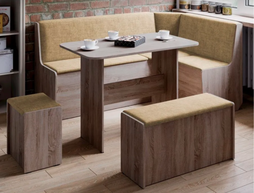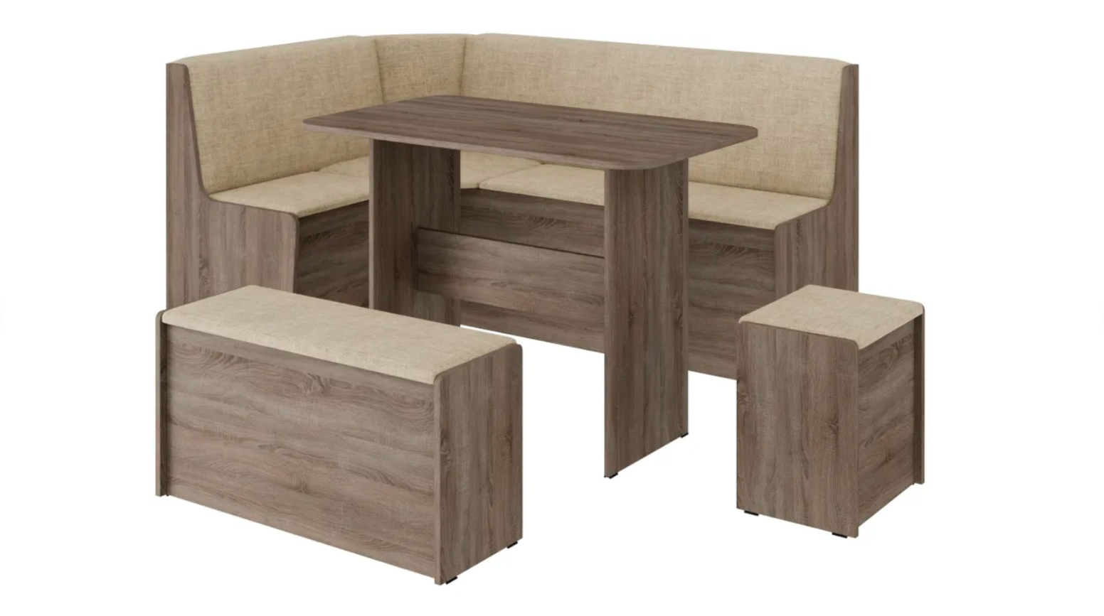 Кухонный уголок Чикаго PRIME дуб сонома трюфель, рогожка бежевая, с ящиками интересное: