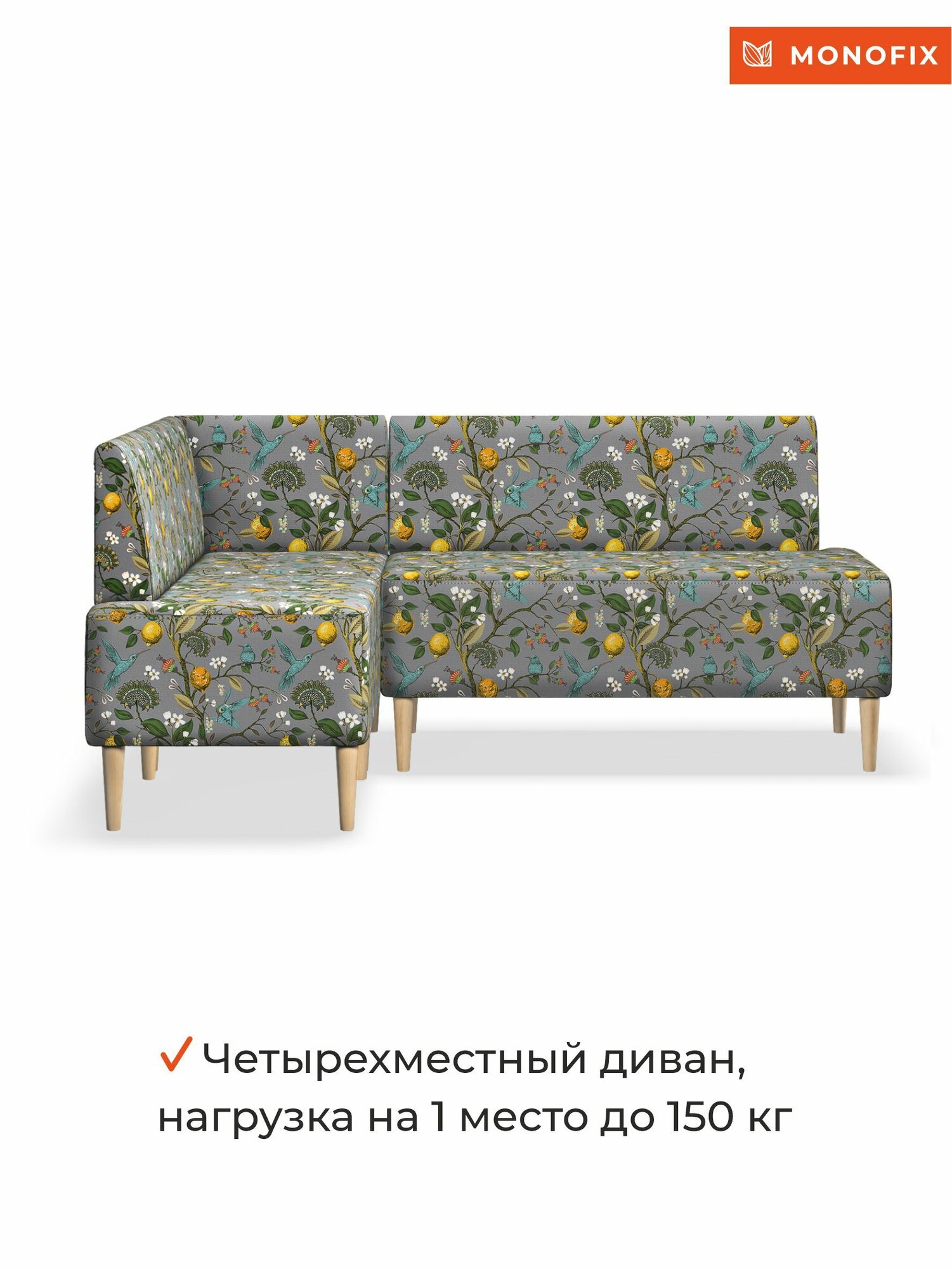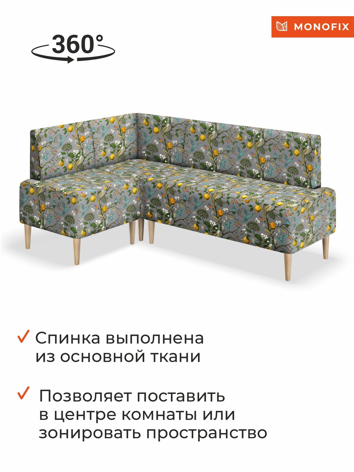 Кухонный уголок мягкий четт принт, велюр Лимоны светло-серый интересное: