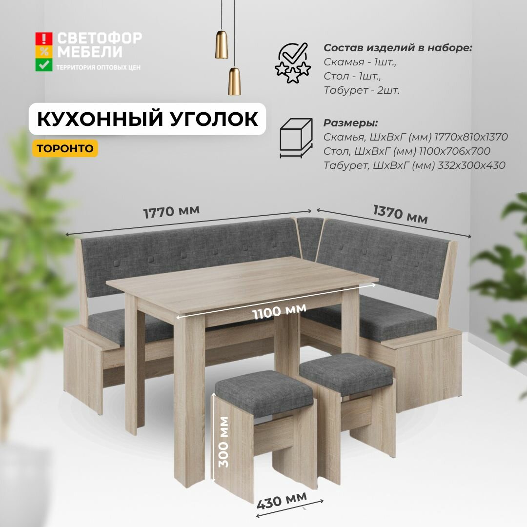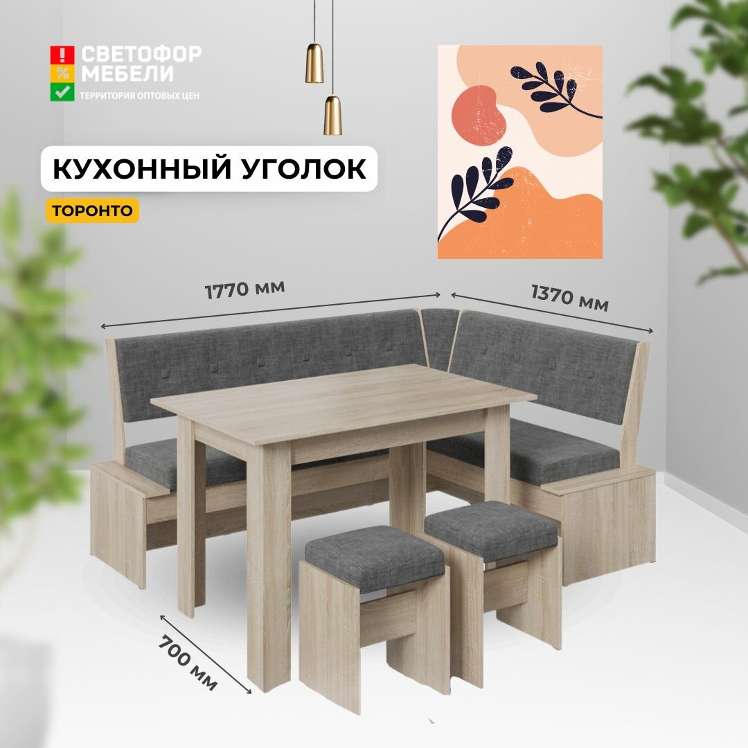 Кухонный уголок Бонмебель Торонто 1770х1370х795 Дуб Сонома/Ткань Серая интересное: