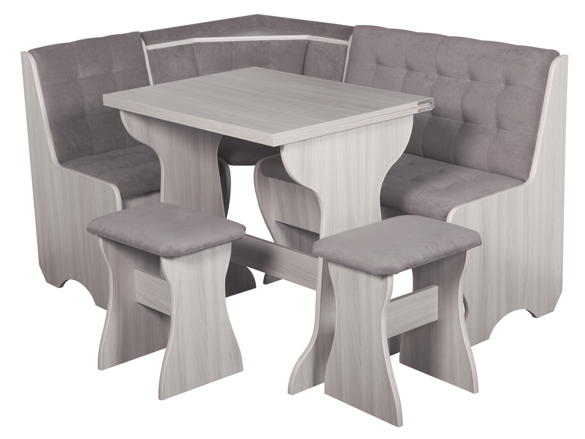 Купить Кухонный уголок "Стиль-1Л" ясень шимо светлый/велюр Т5 беж, с поворотным столом и табуретами