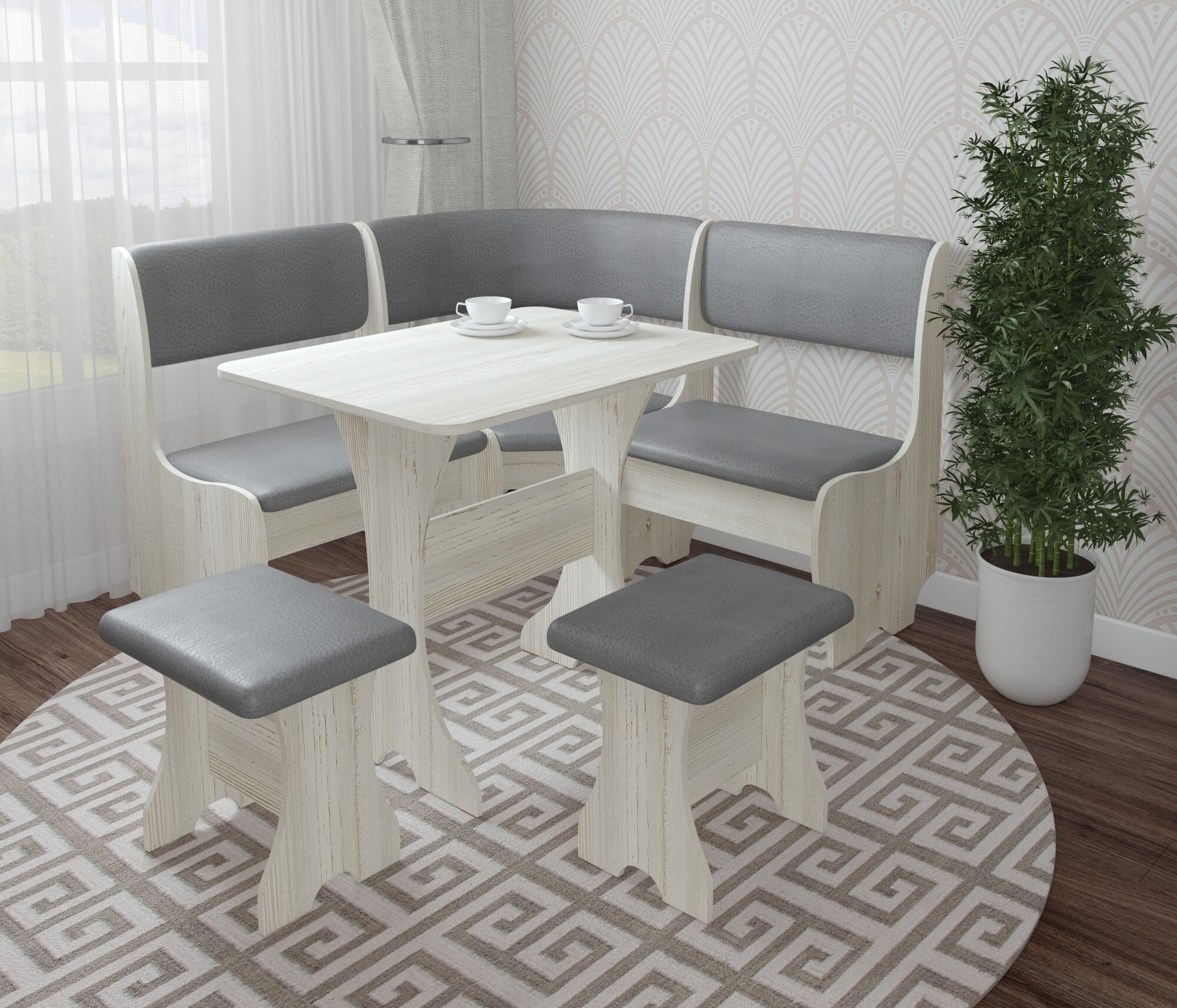 Кухонный уголок Есэндвич compatto Оливьер, 110x110x86,5 см (Белый/Рогожка Savana Plus Ash)