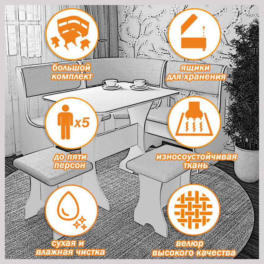 Кухонный уголок Есэндвич compatto Оливьер, 110x110x86,5 см (Белый/Рогожка Savana Plus Ash)