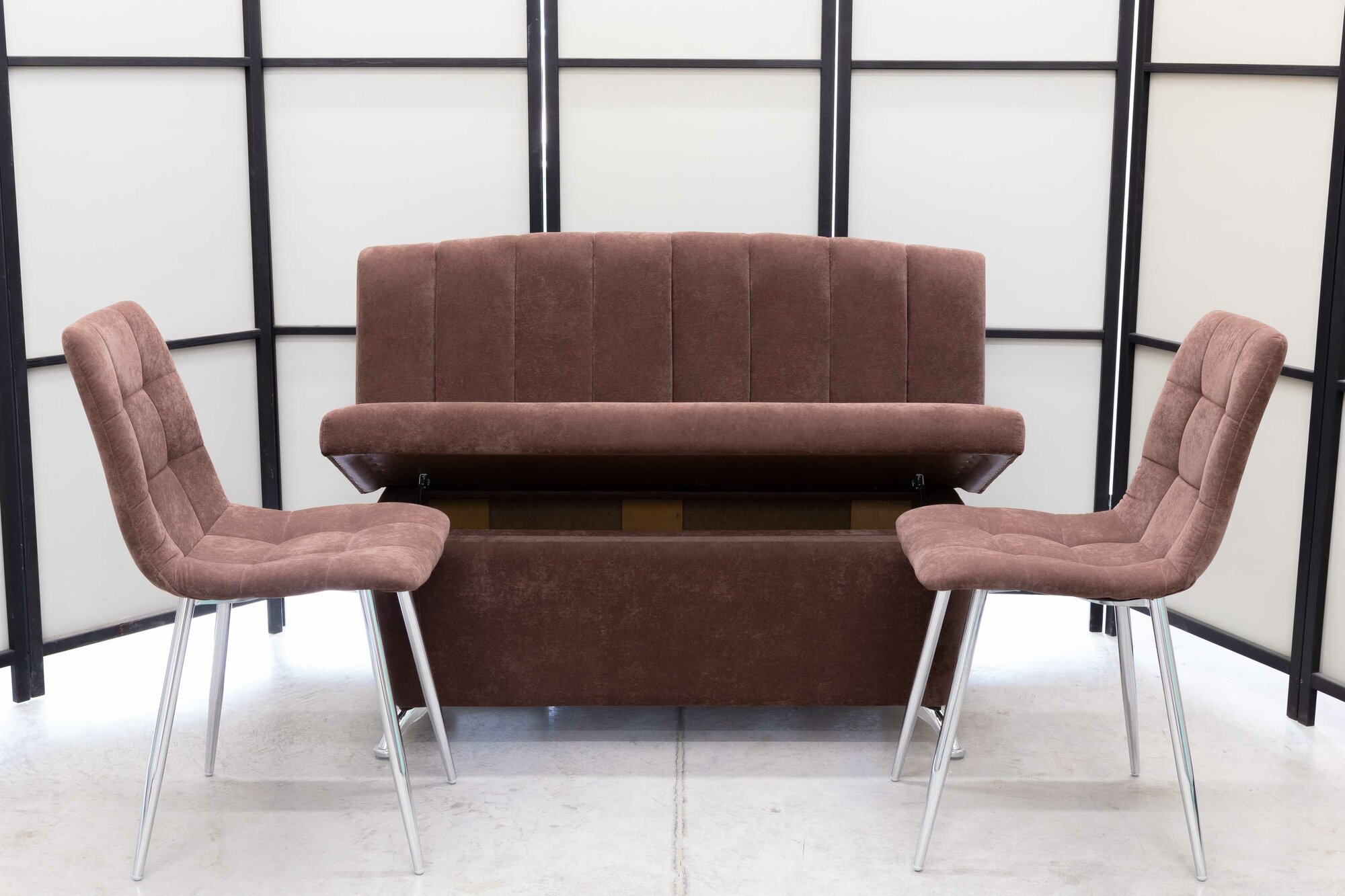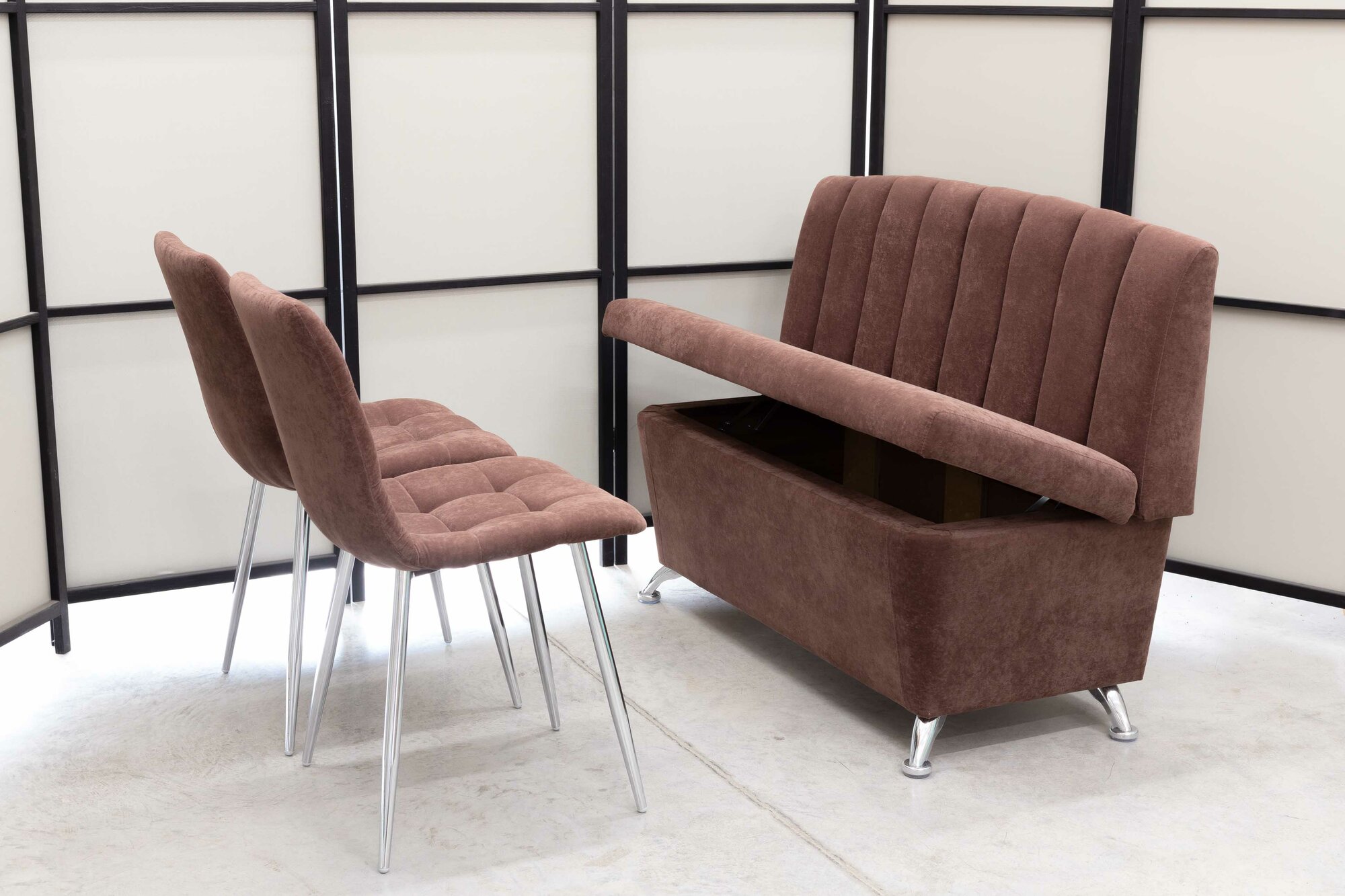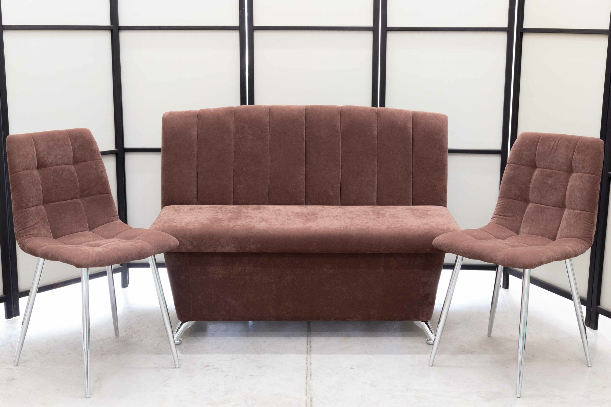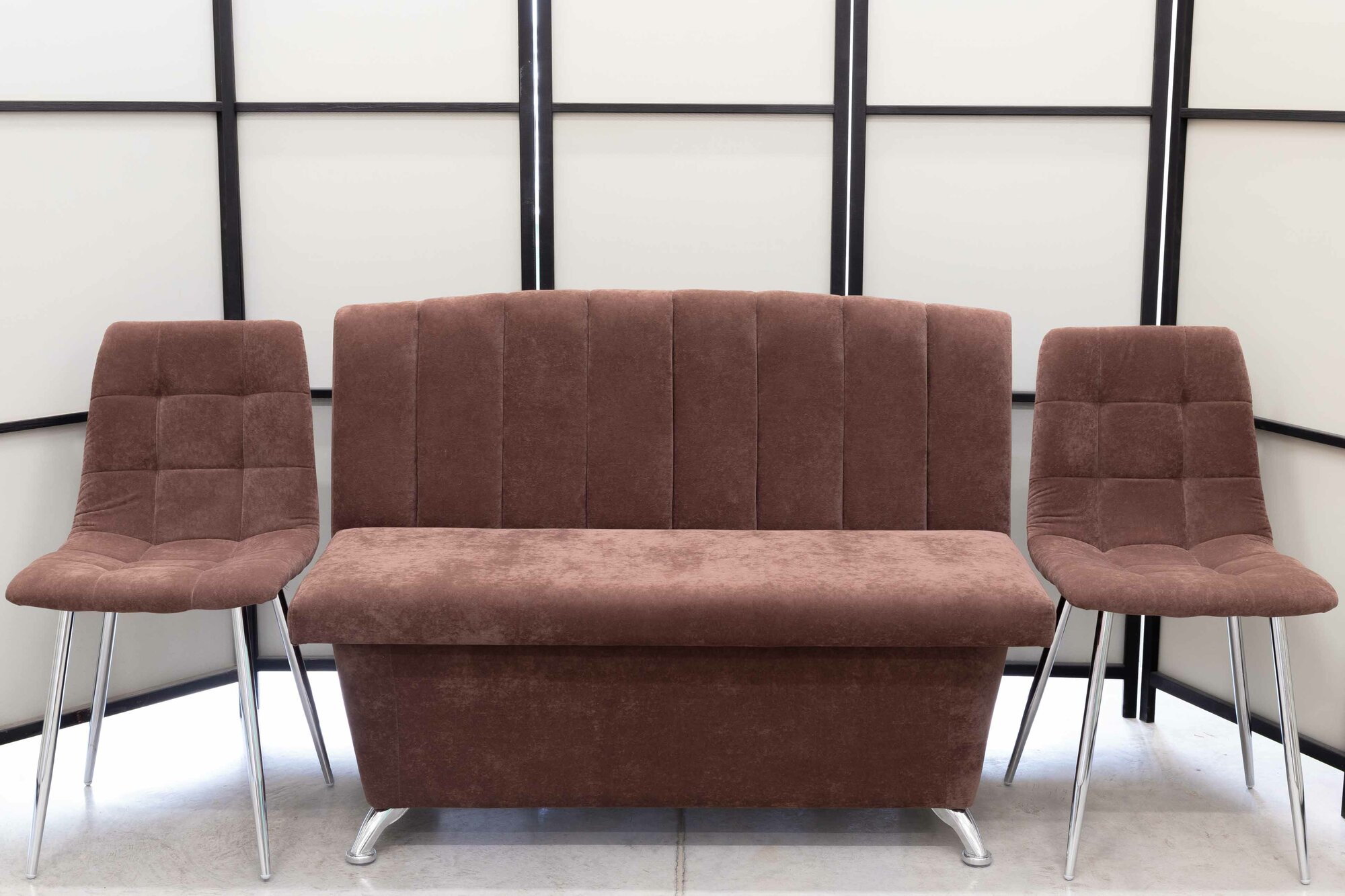 Кухонный диван Альт со стульями (2 шт.), 120х56 см, обивка моющаяся, антивандальная, антикоготь, цвет - мокка.